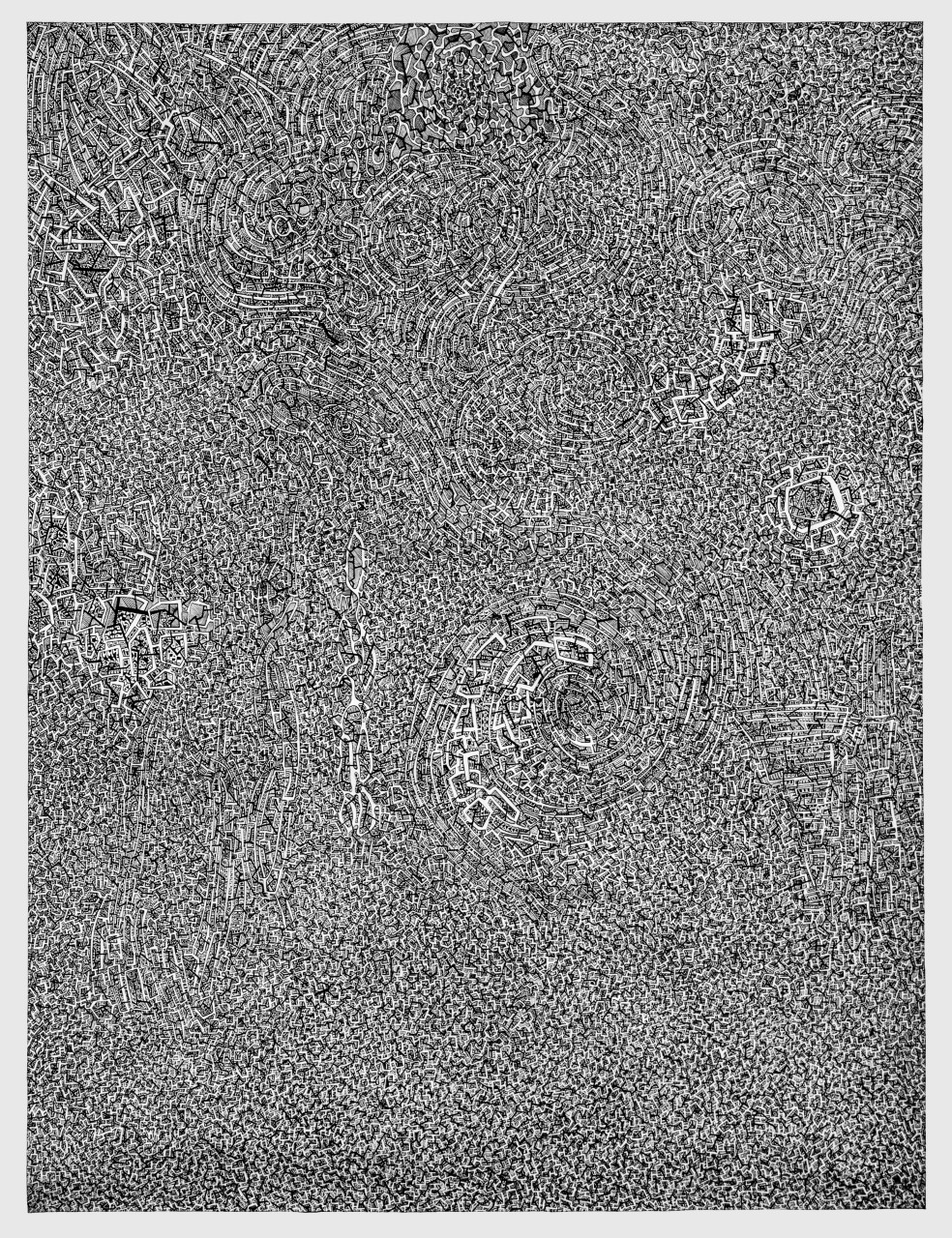 "Oeuvre la plus grande d'une série de "Labyrinthes" exposée en 2018 lors d'une exposition monographique à la Galerie Cruset (Nogent-sur-Marne)".