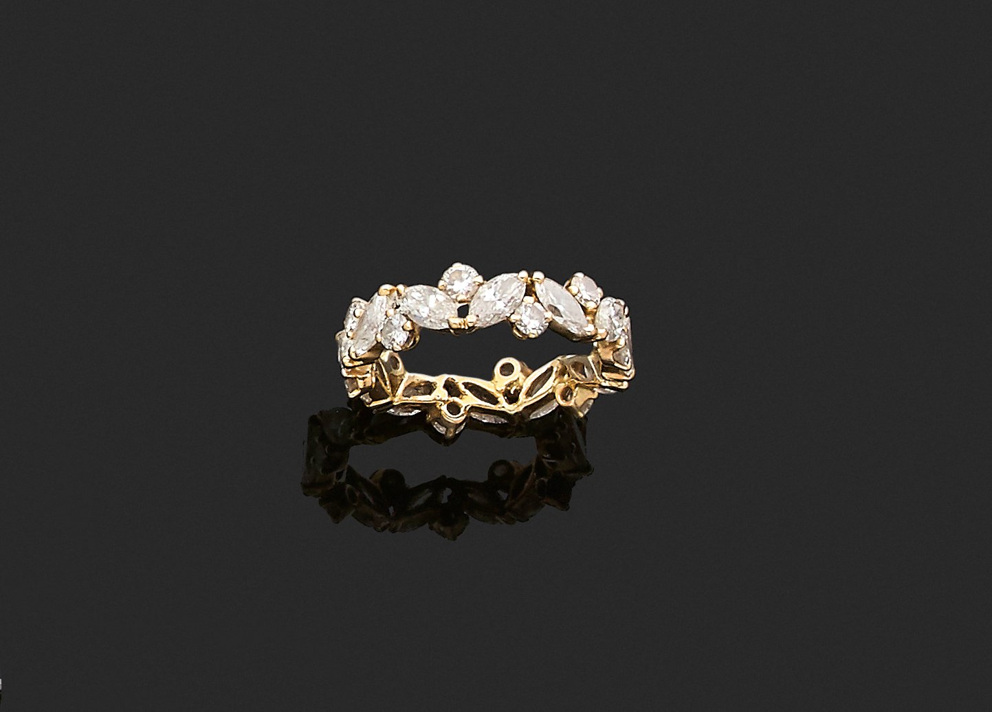 ALLIANCE en or jaune 750 millièmes, entièrement sertie de vingt-quatre diamants ronds de taille brillant et navette alternés.