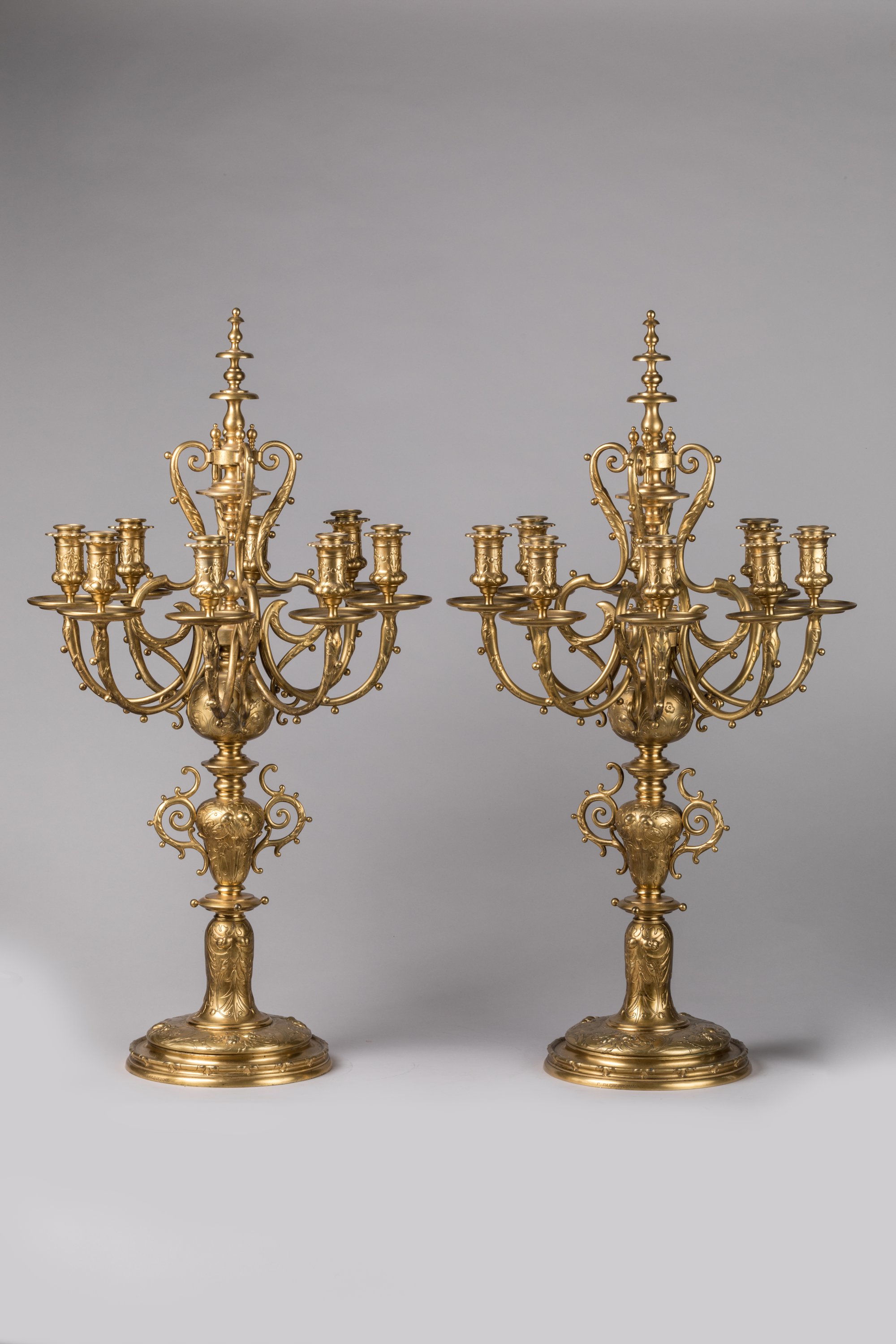 Important pair of gilt bronze candelabra by Barbedienne.