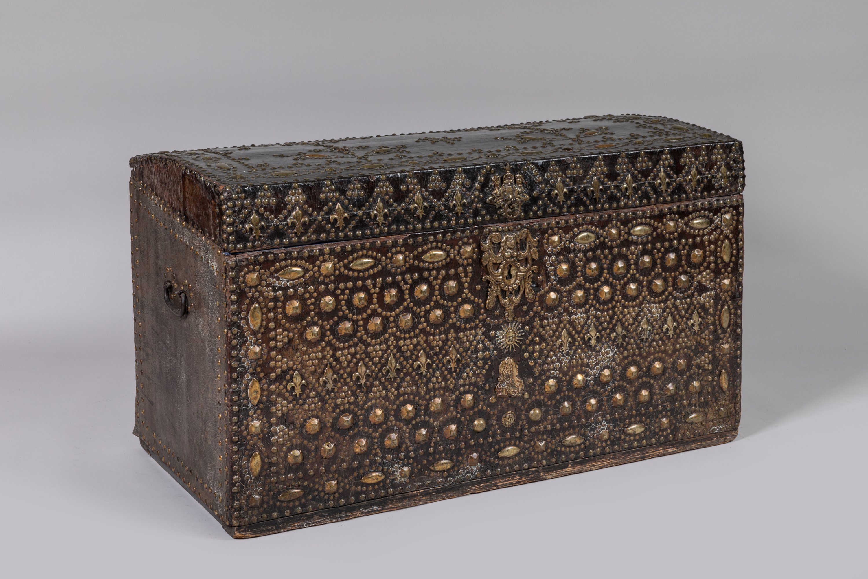 Leather coach trunk in the profile of Louis XIV. Late 17th, early 18th century.