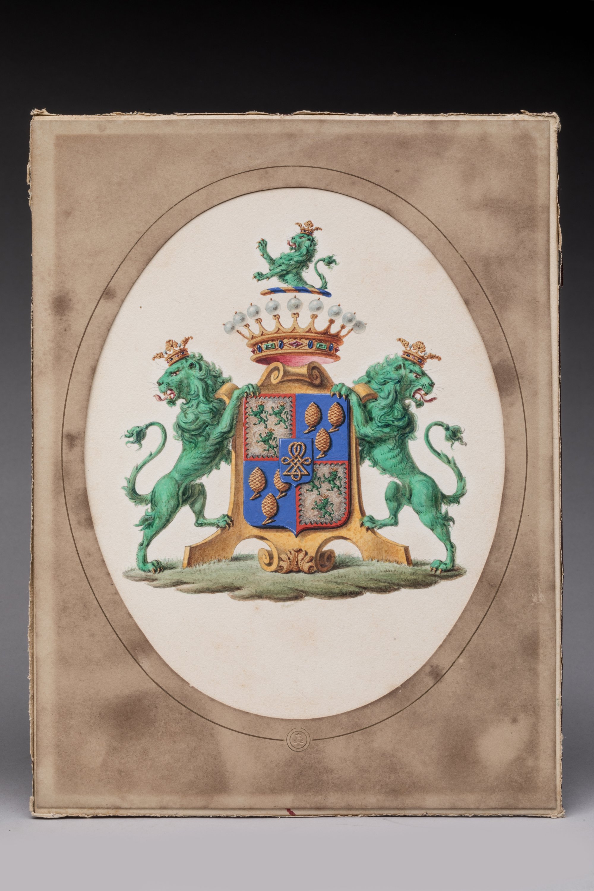 Un autre dessin de blason d'écartelé , en couleurs non identifié portant l'inscription "Pinxit Ludovicus de Malortie Compigny anno 1838", au format 16,3 x 21,6 cm, est également joint.