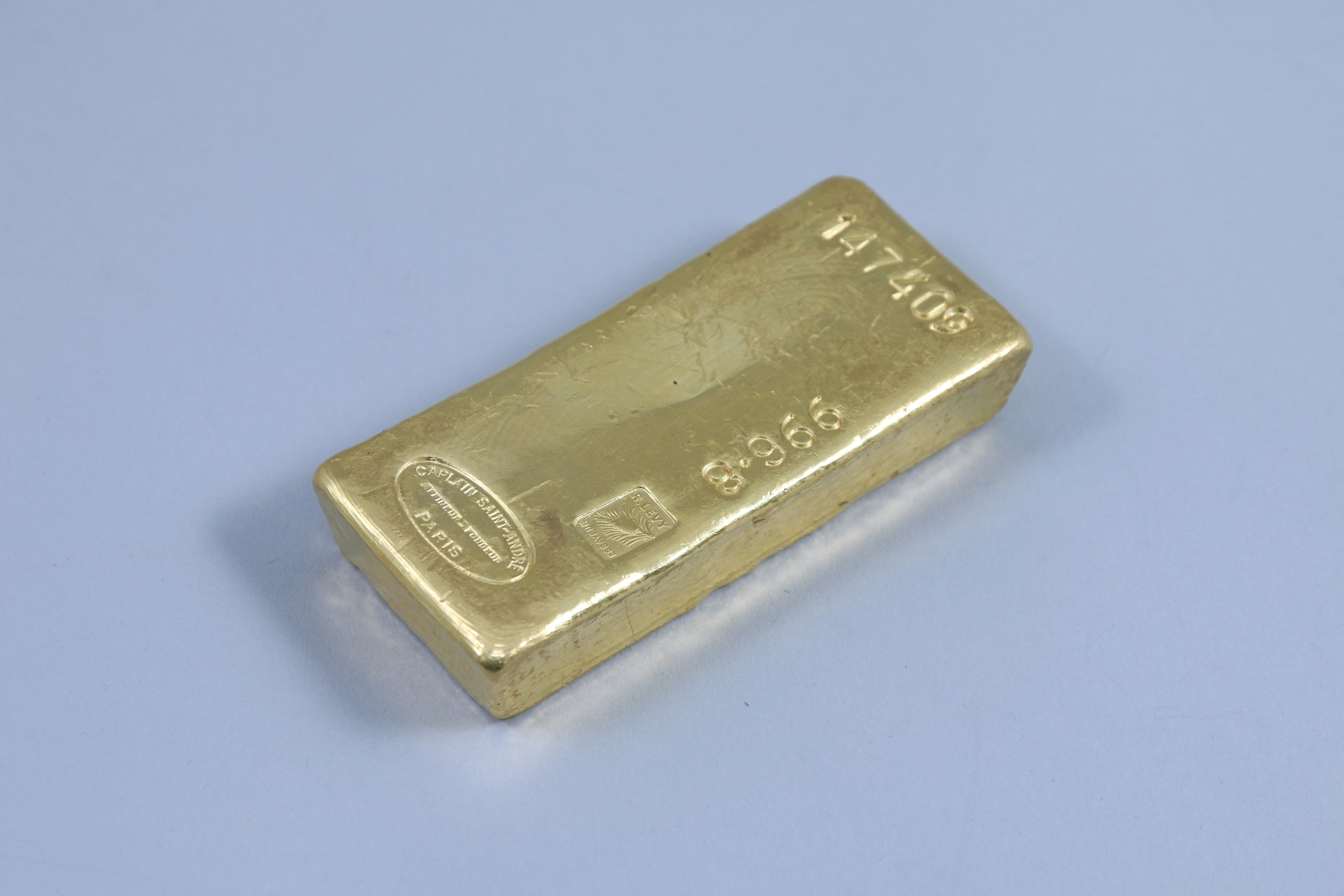 LINGOT OR. Bulletin d'essais du 22 mars 1968: n°147409. Titre d'or 996,8. Poids brut 1.000 g. Or fin 996,8 gr.
