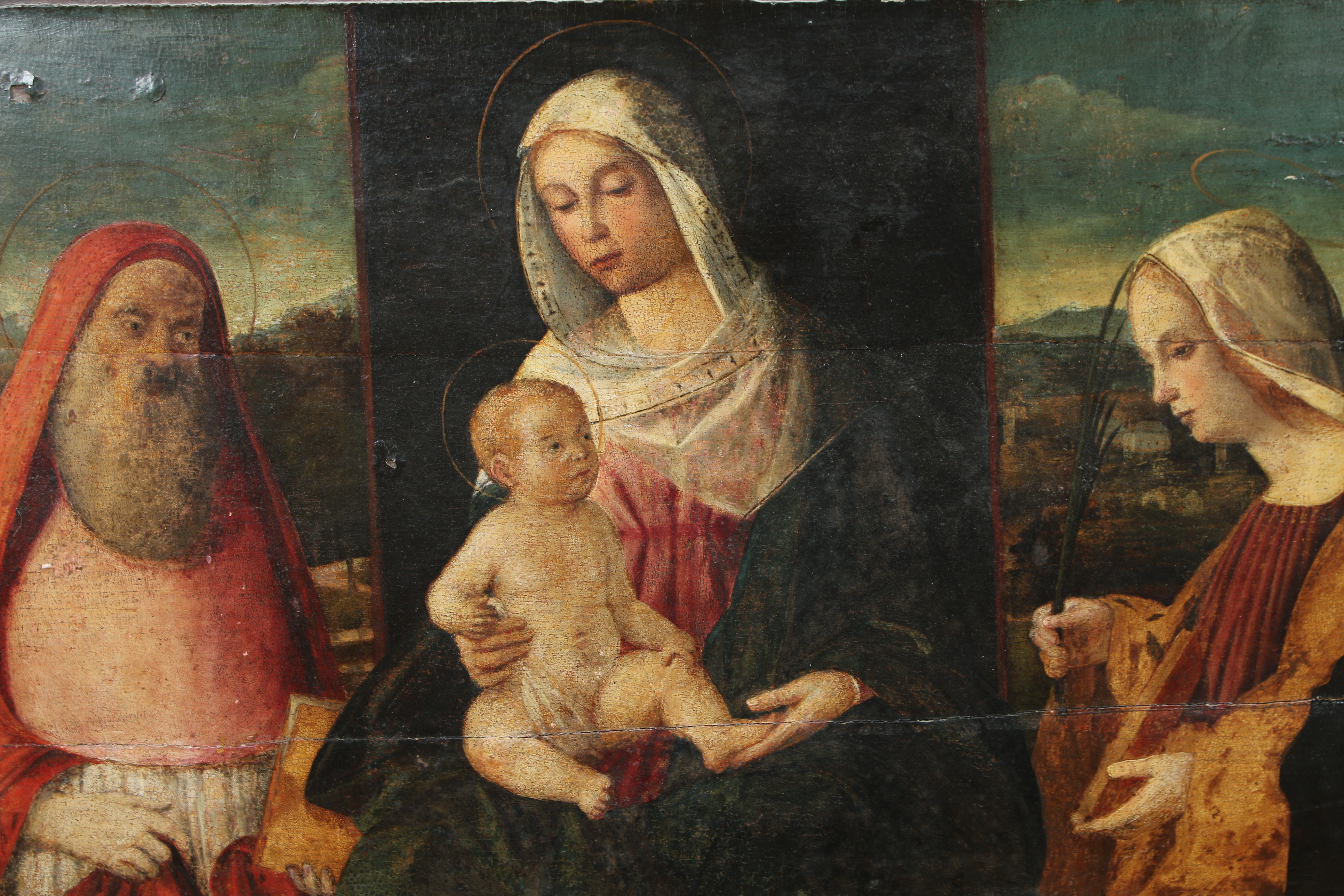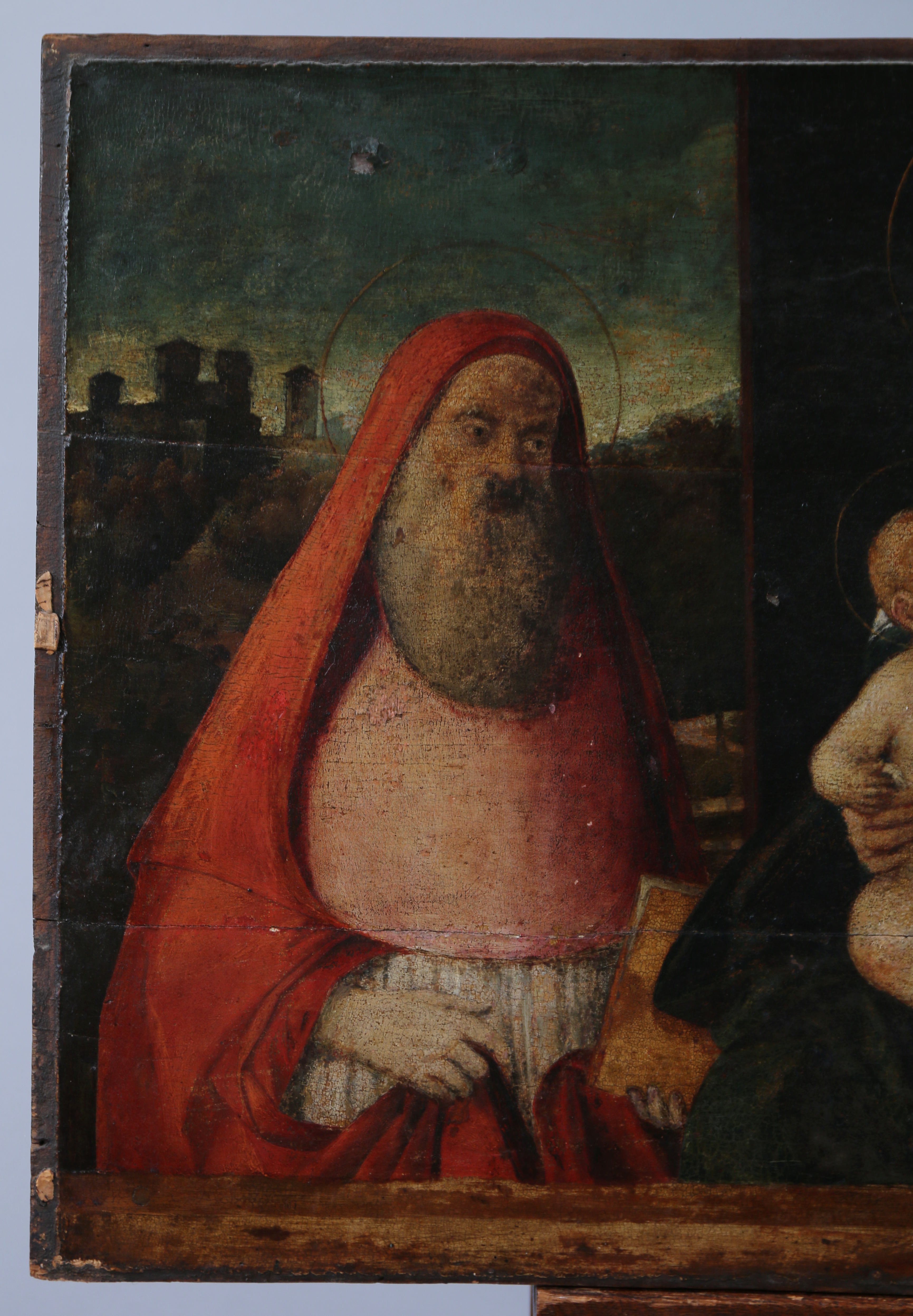 The Virgin and Child between St. Jerome and a holy martyr. Panel attributed to Bissolo.