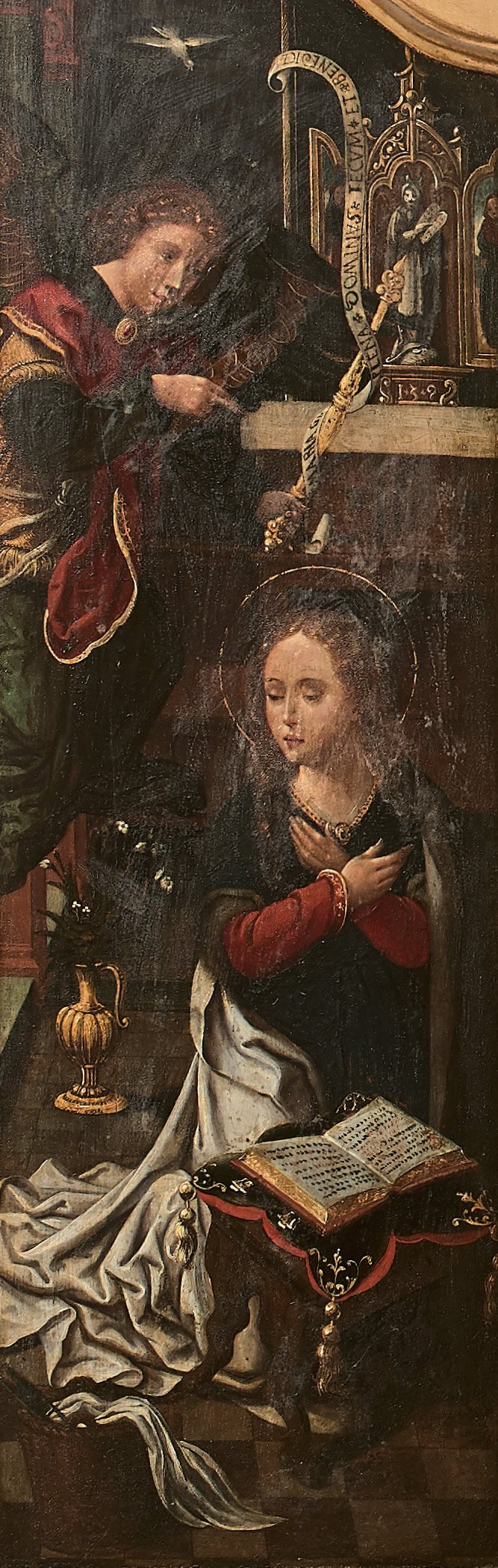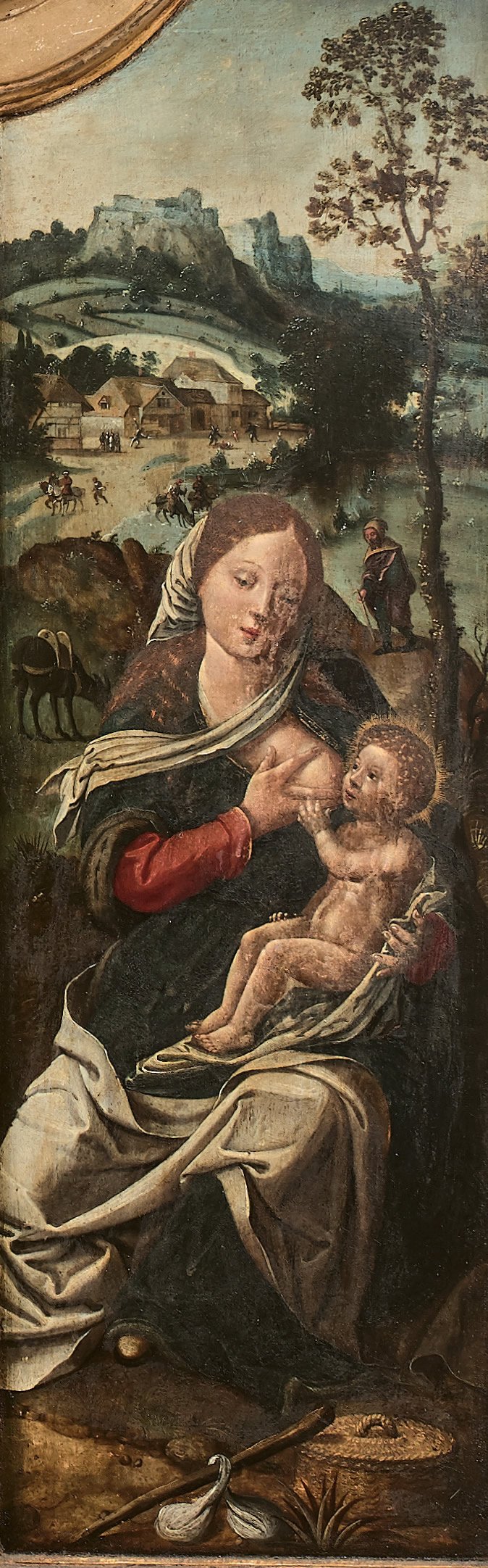 Pieter Coeck et son atelier ont réalisé un certain nombre de triptyques pour la dévotion privée. Dans celui-ci, l'alternance des trois mêmes scènes évangéliques est similaire à deux autres conservés au Palazzo Bianco à Gênes (Georges Marlier, La Renaissance flamande, Pierre Coeck d'Alost, 1966, p.122, fig.46, 93 x 109 cm) et à l'Université de Princeton (Marlier, op.cit., p.125, fig.49, 99.5 × 137.5 cm) avec à chaque fois quelques variantes. Dans le panneau de gauche, l'Annonciation, le visage de la Vierge est tourné différemment vers la gauche. Les détails du paysage de la Fuite en Egypte varient aussi à chaque fois, et la composition centrale de notre uvre intervertie la place de chaque roi mage par rapport aux deux autres triptyques cités.