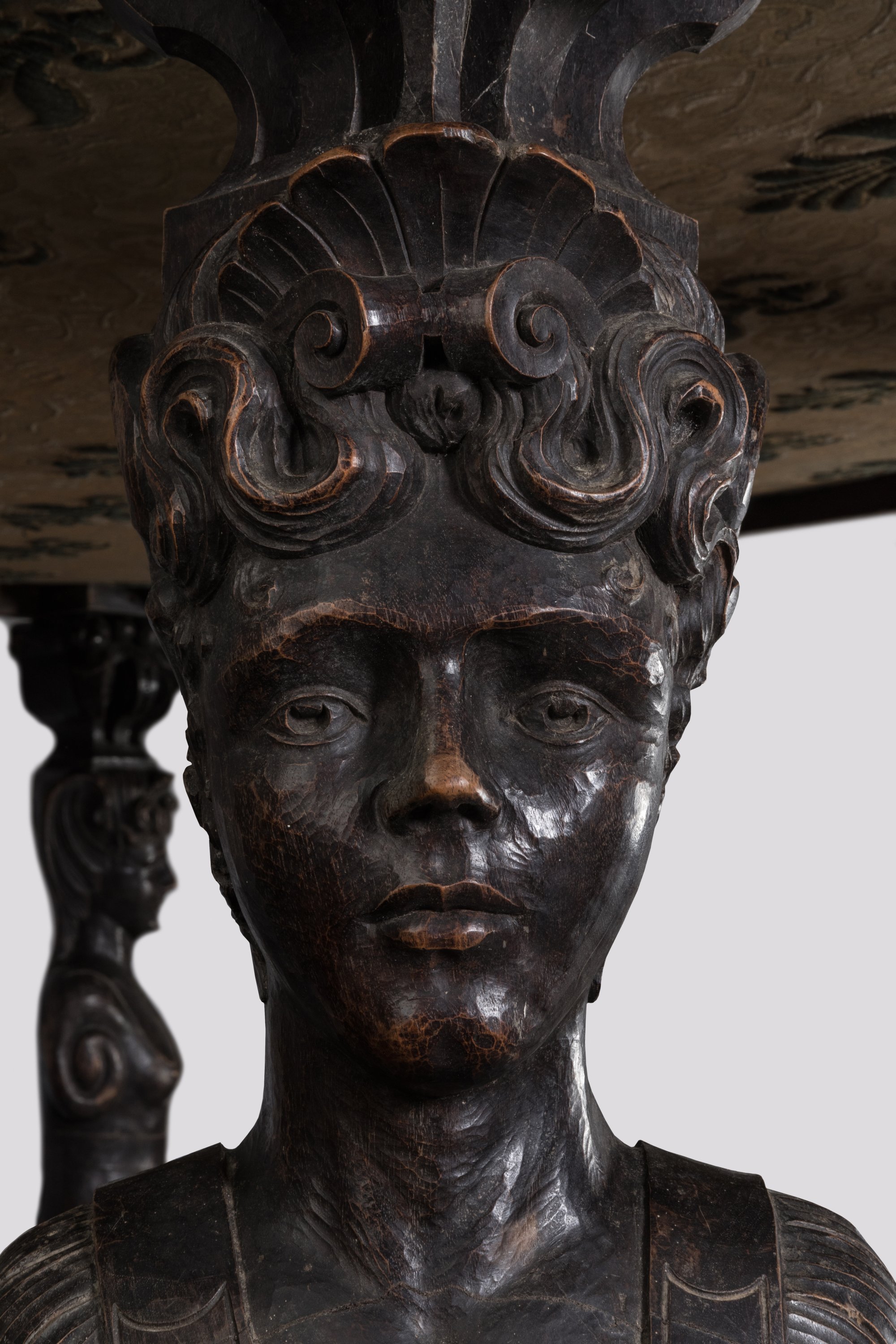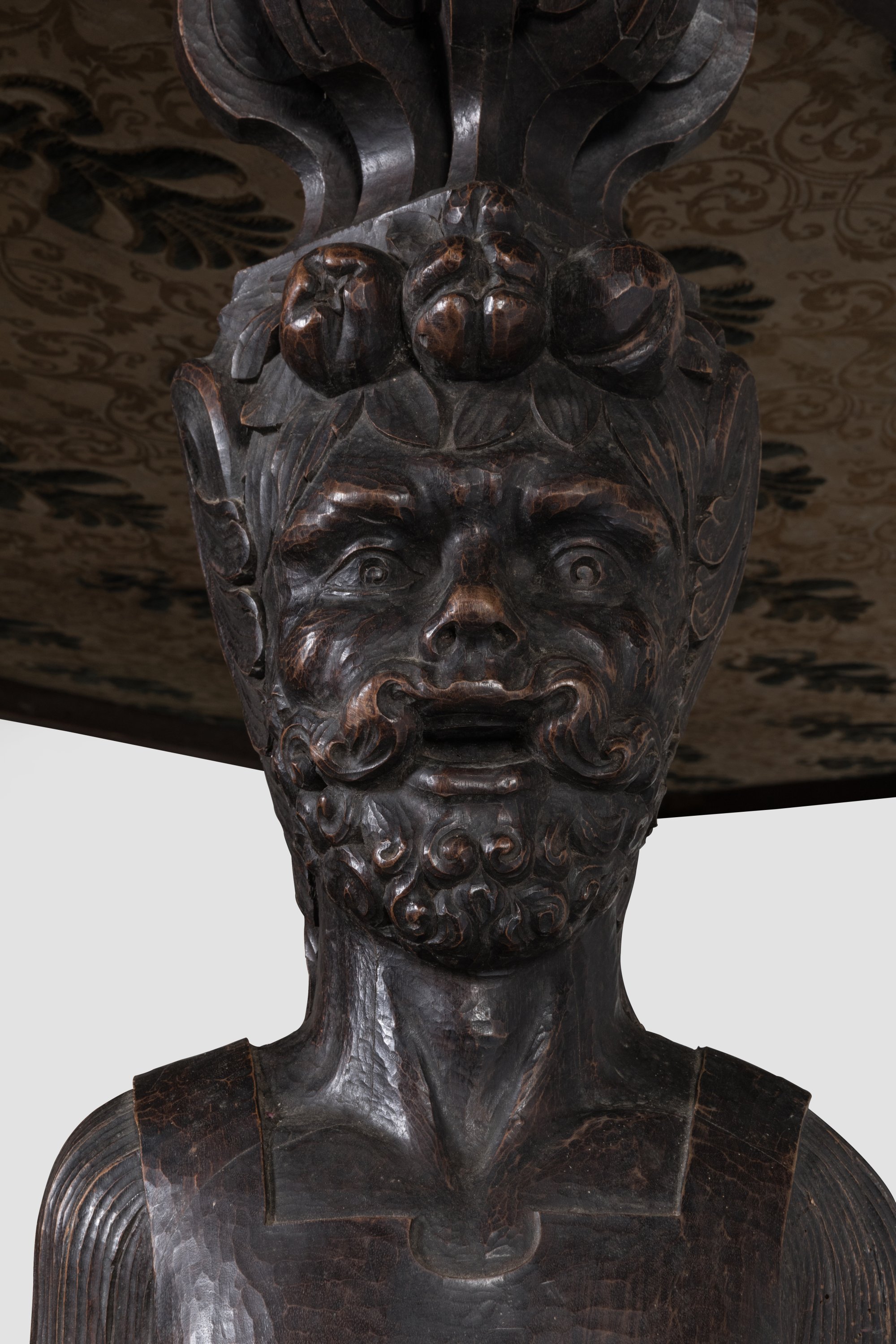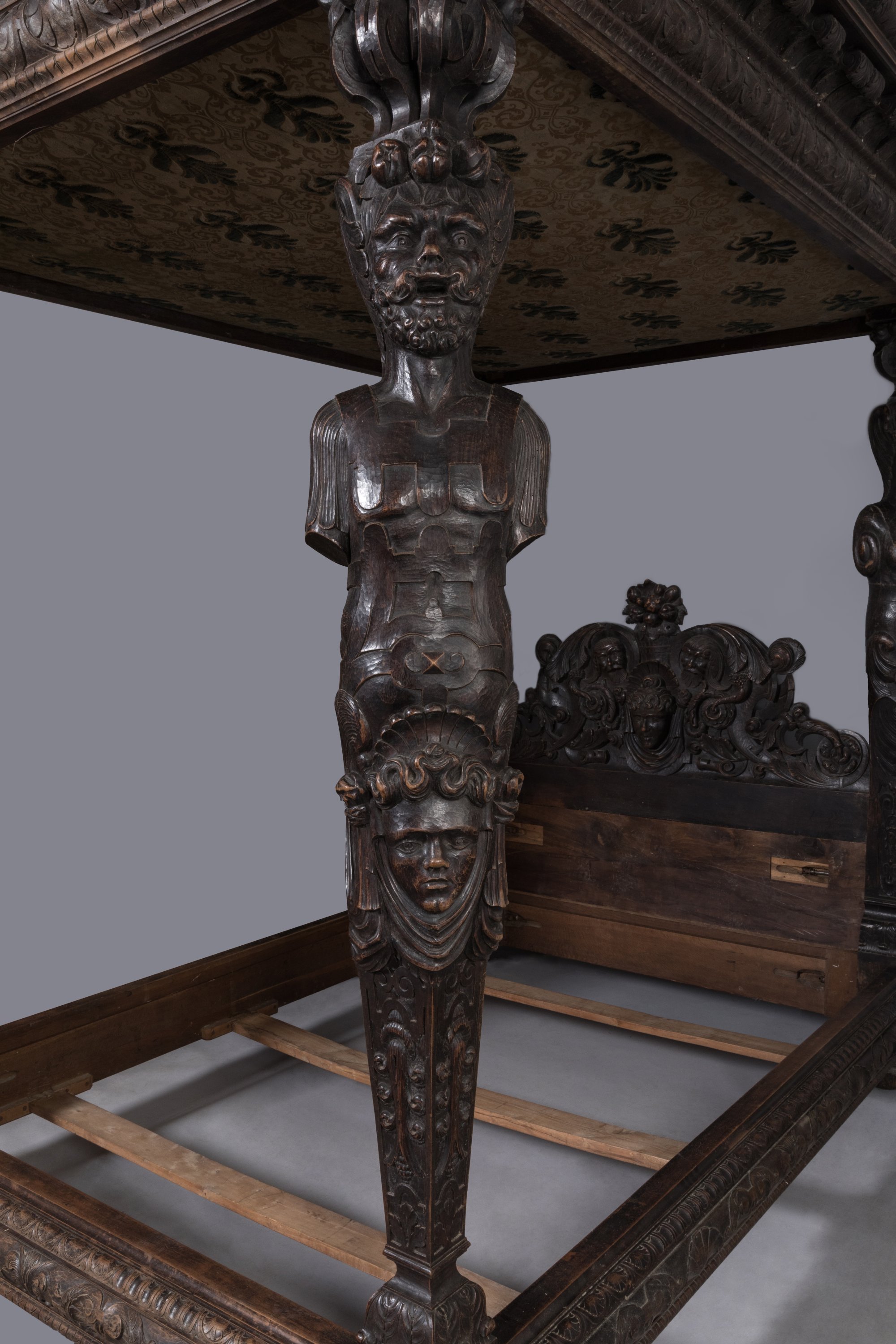 Exceptional so called "Henri III ceremonial bed" with caryatids, from the former collection of the castle of Amboise. Work of the 19th century in the taste of the renaissance.