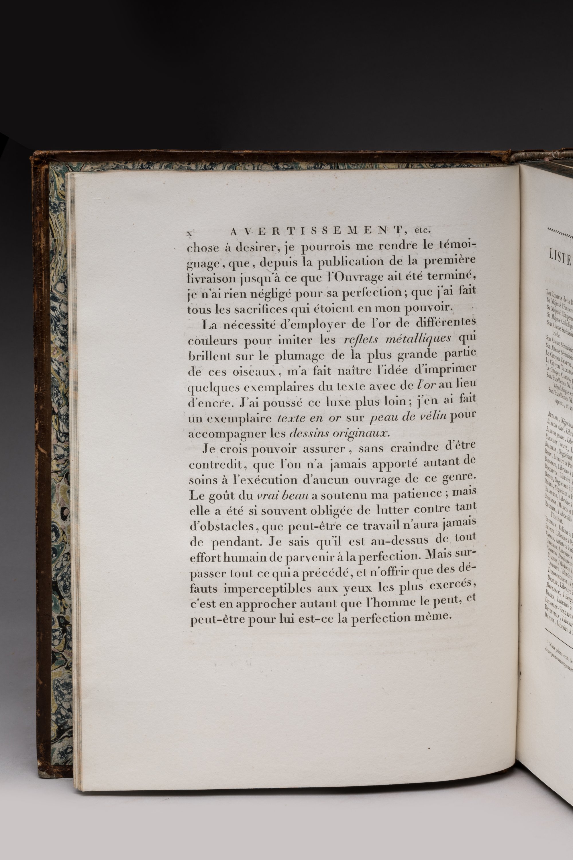 One of the one hundred large in-4° format copies of the first bird book to be printed in color using a technique developed by Audebert and Redouté.