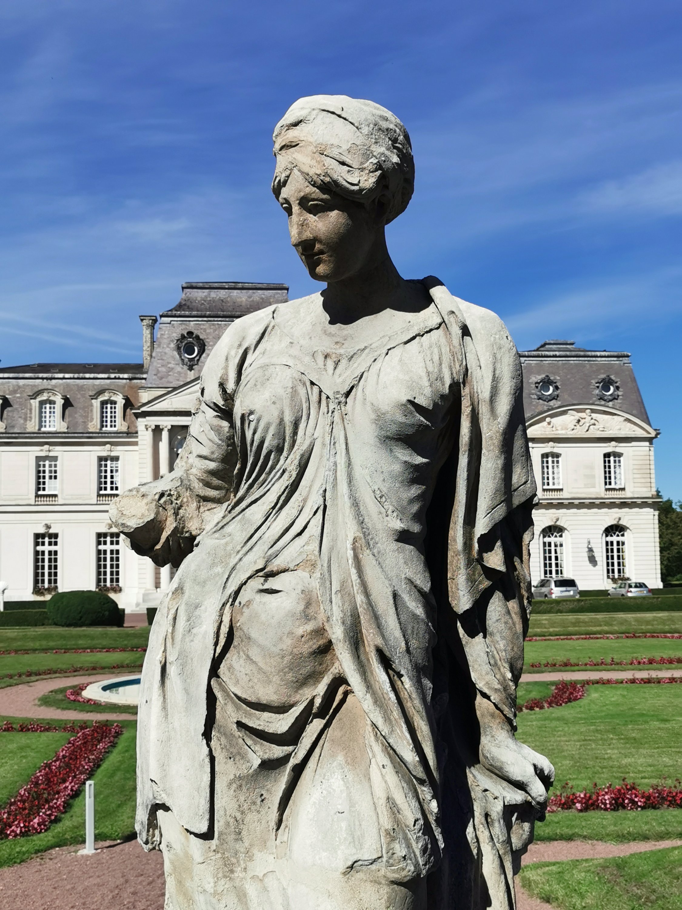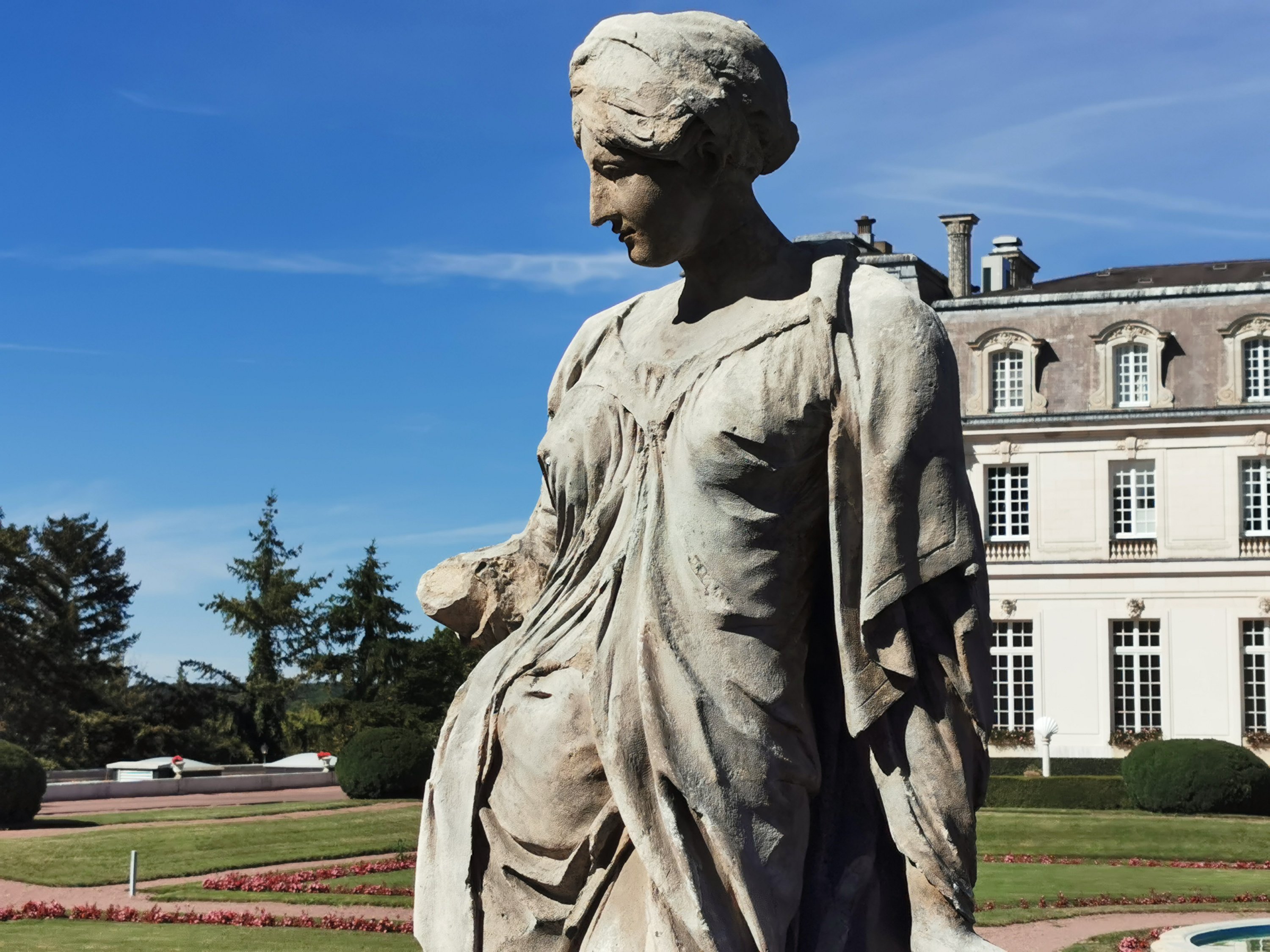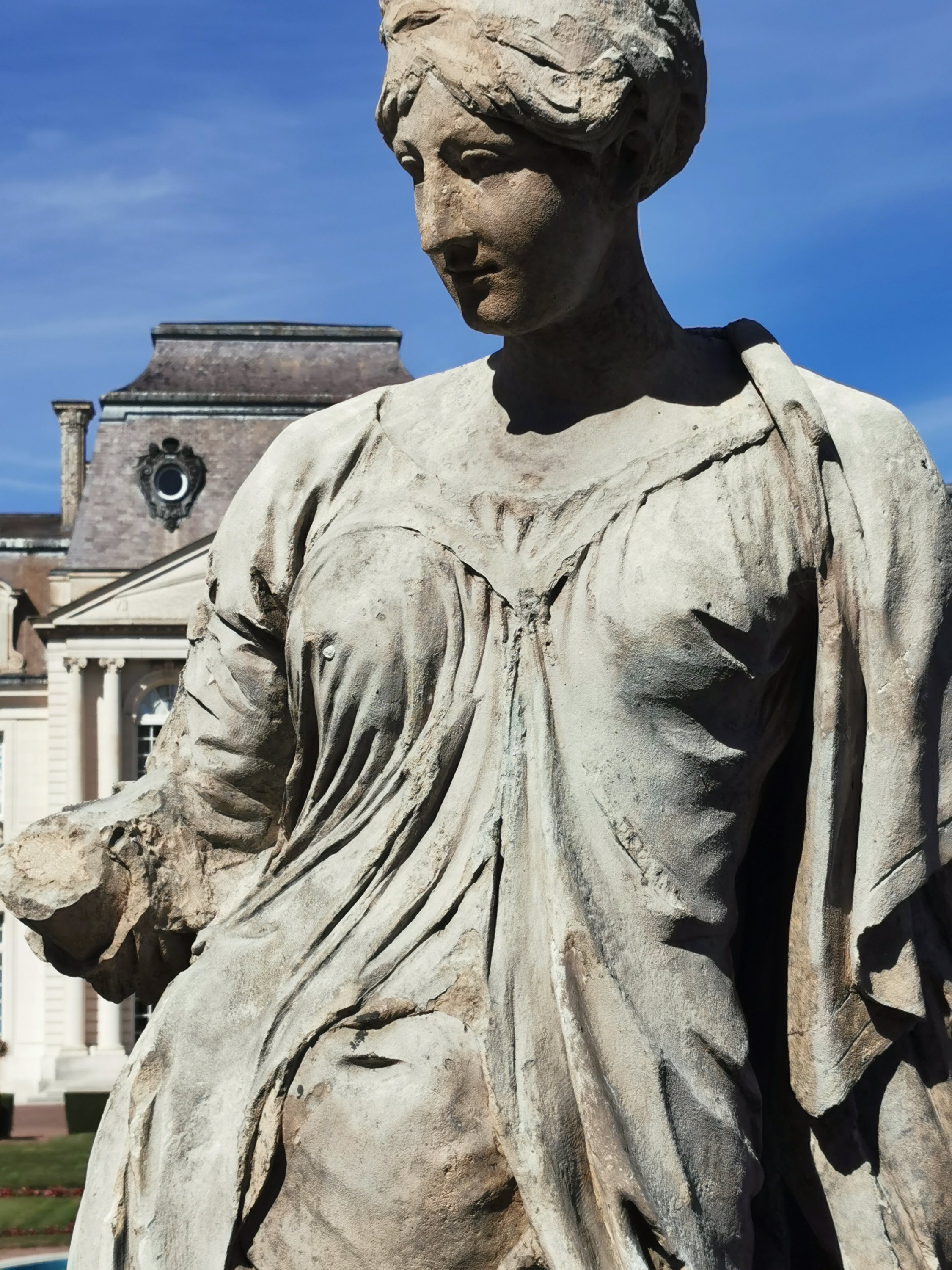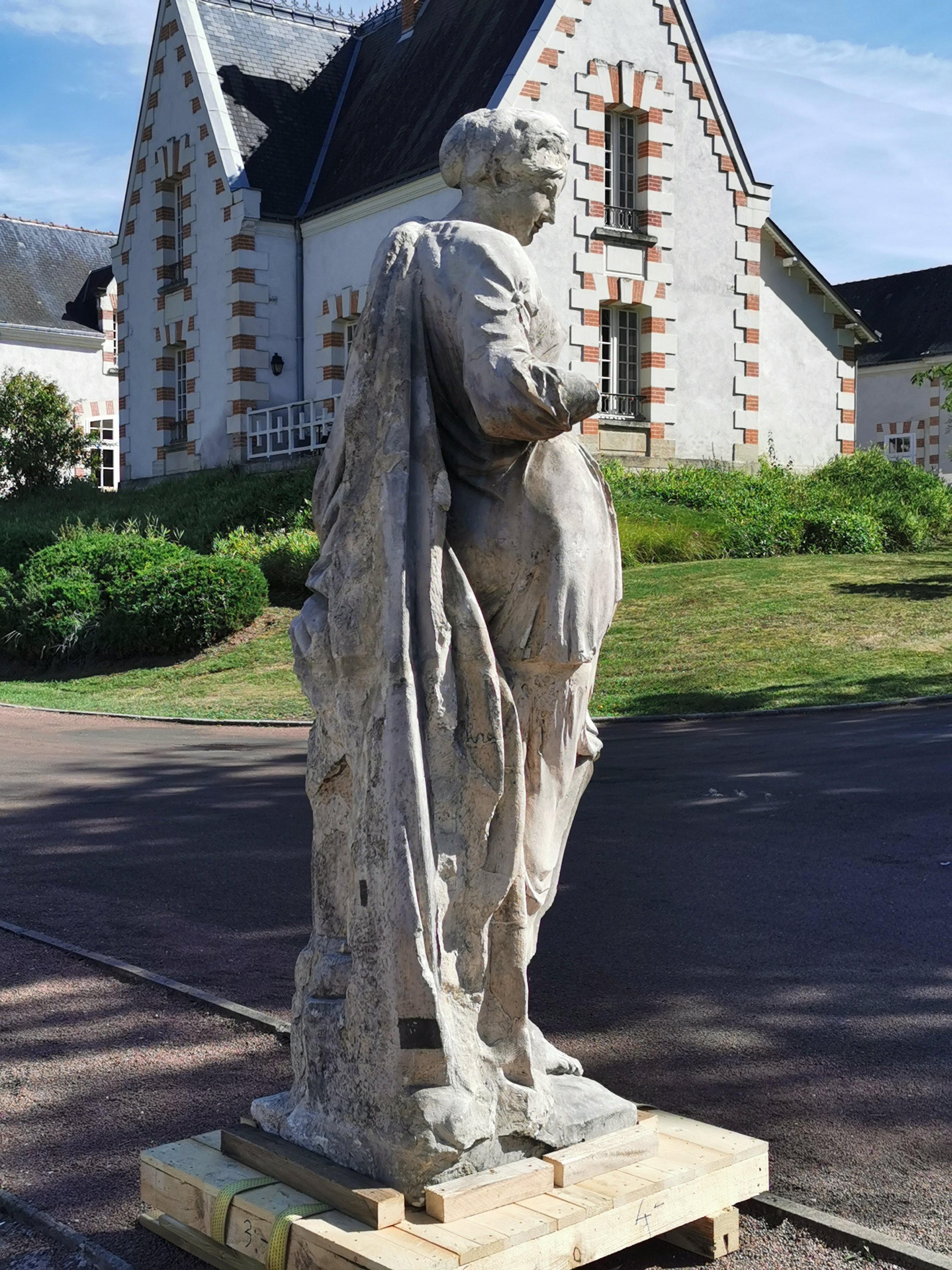 Female allegory in carved stone, probably from the French school of the late 18th century.