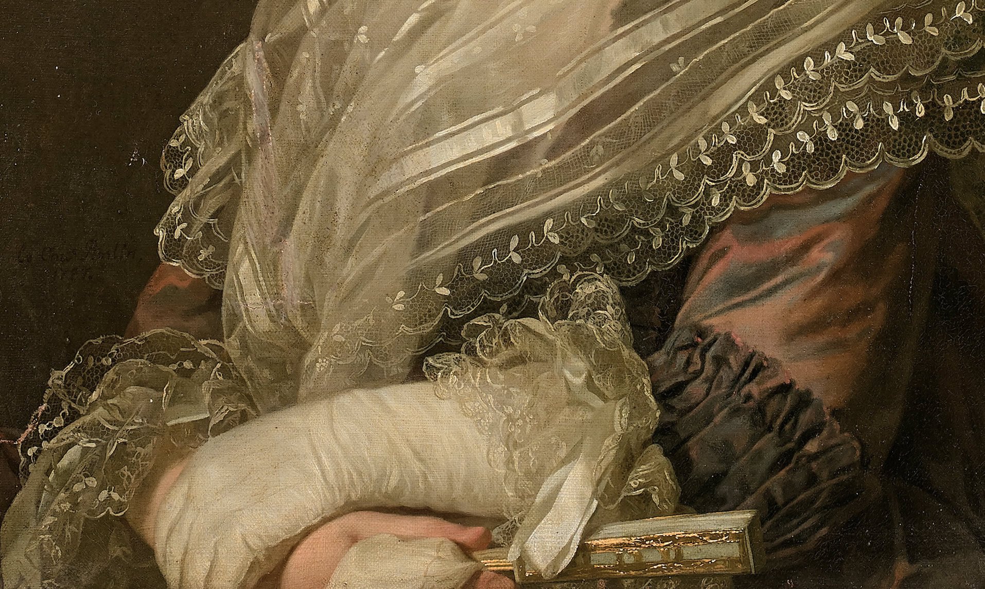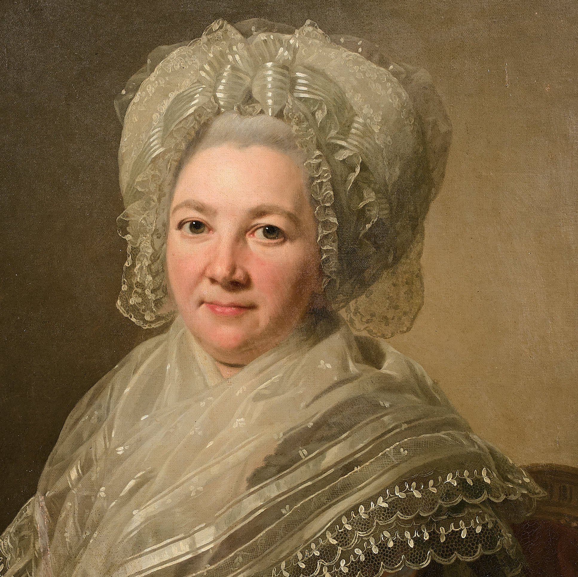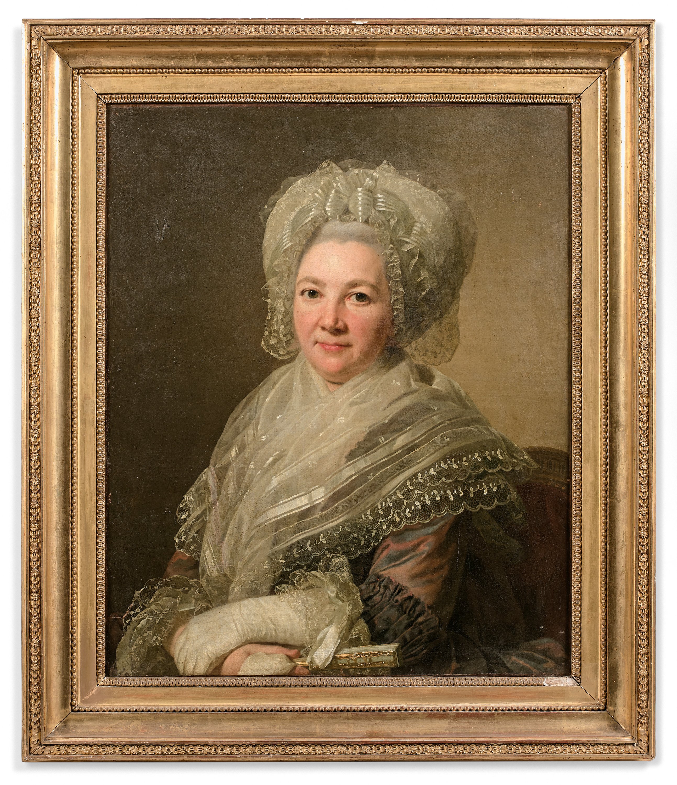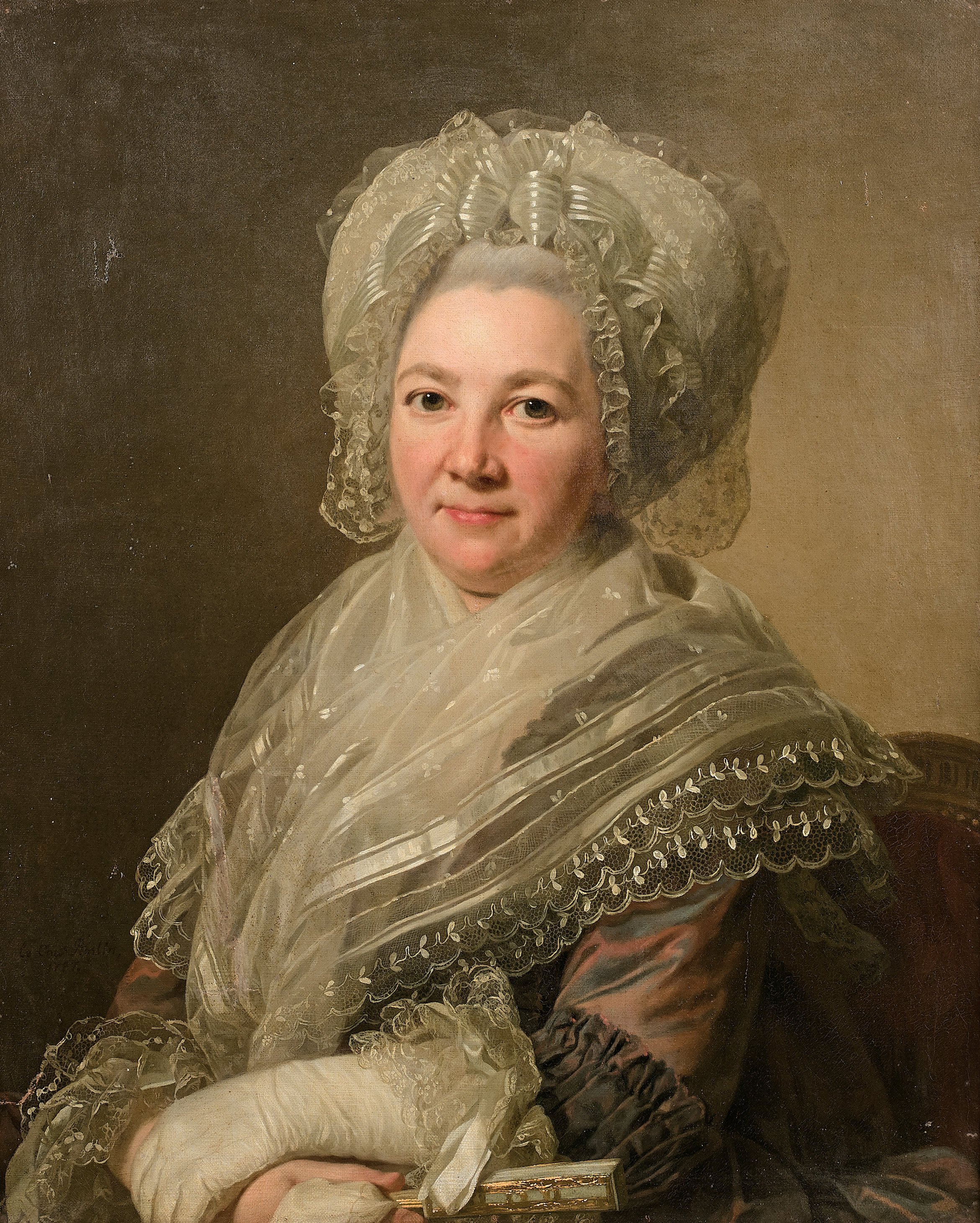 Portrait on canvas of Anne Marie Renée Le Roux by Alexandre Roslin in 1787. Remained in the model's descendants.