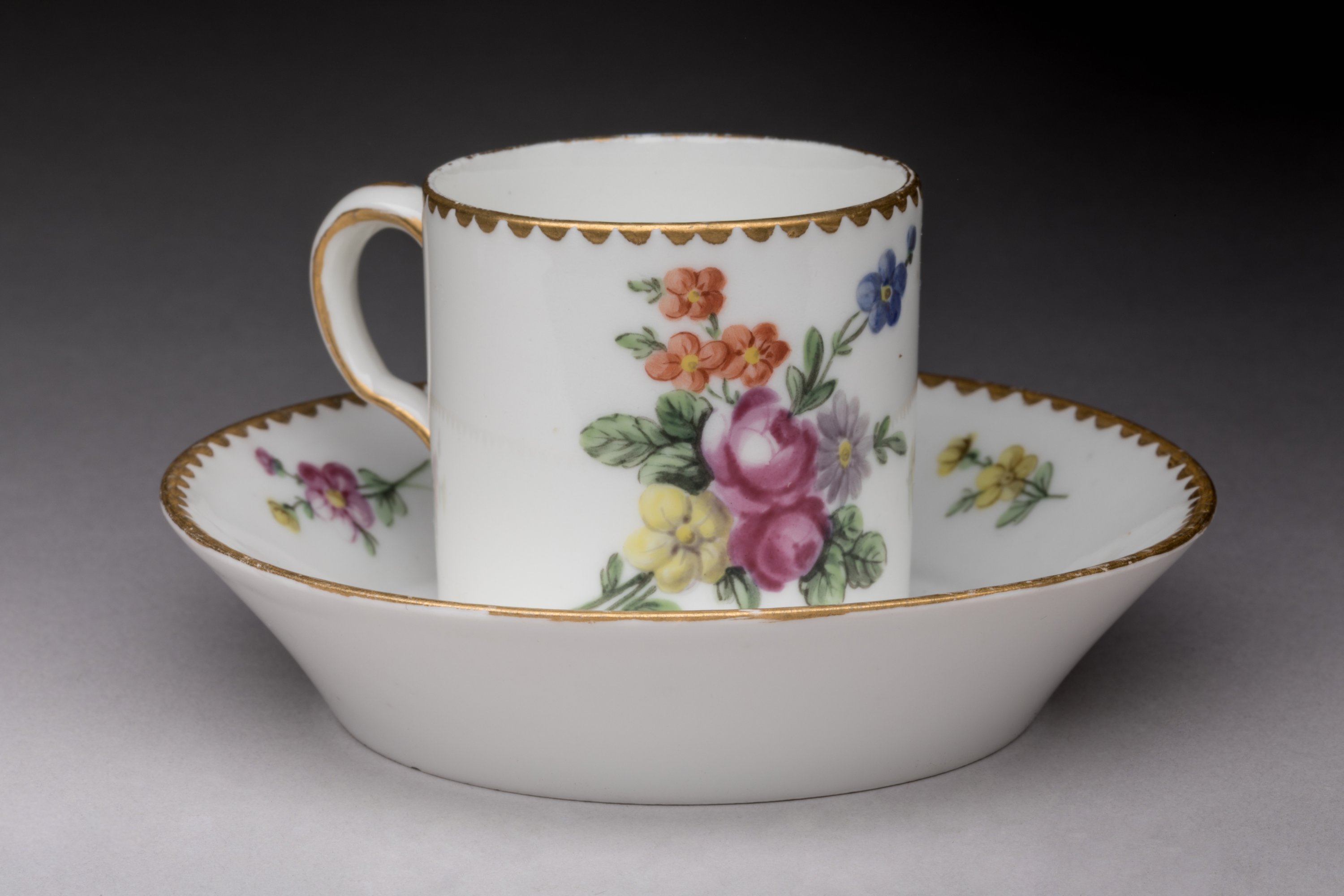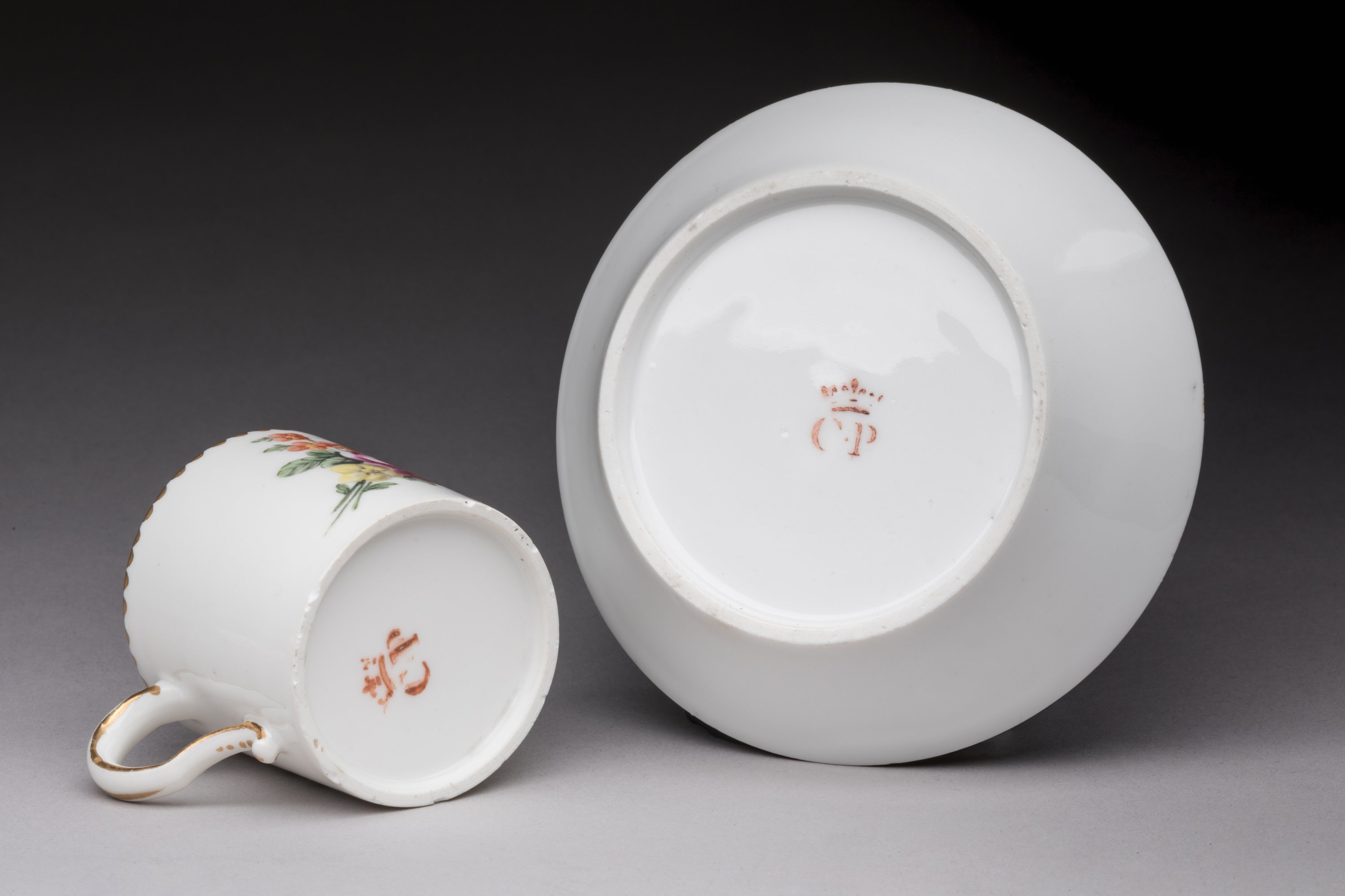 Cup and saucer in Limoges porcelain, manufacture of the Count of Artois, 1779.