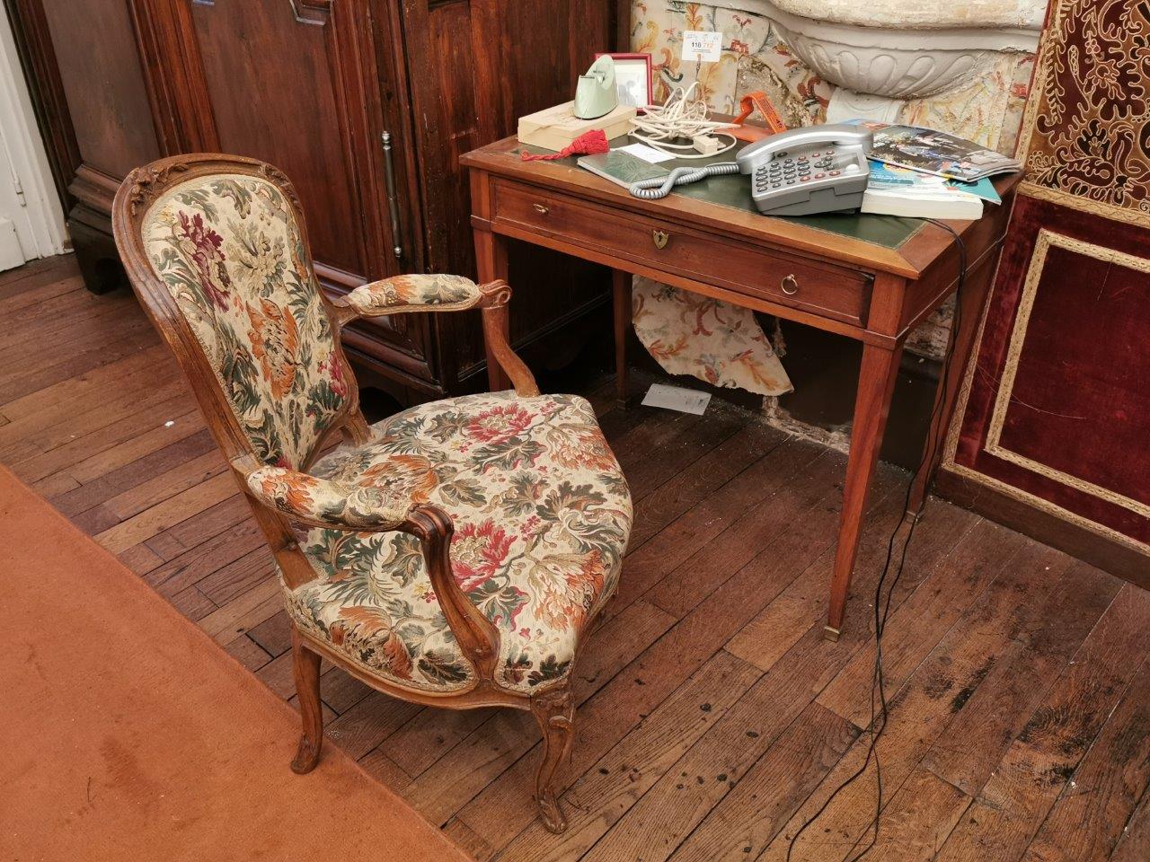 Petit BUREAU en placage d'acajou ouvrant par un tiroir. Quatre...