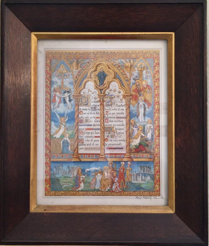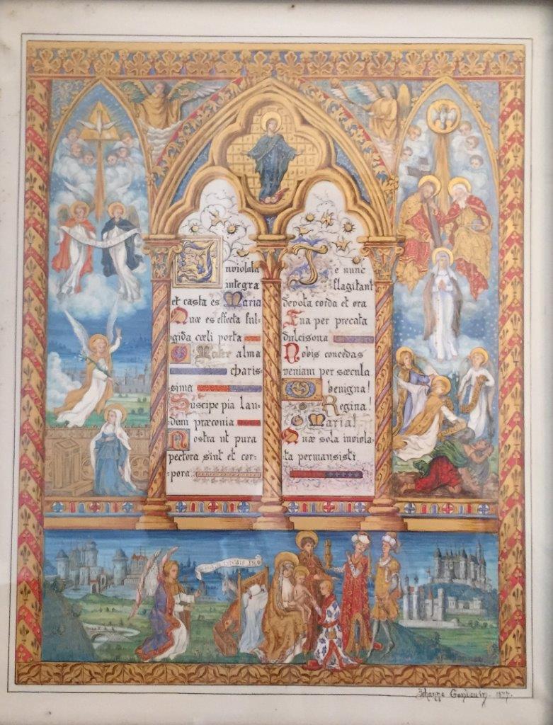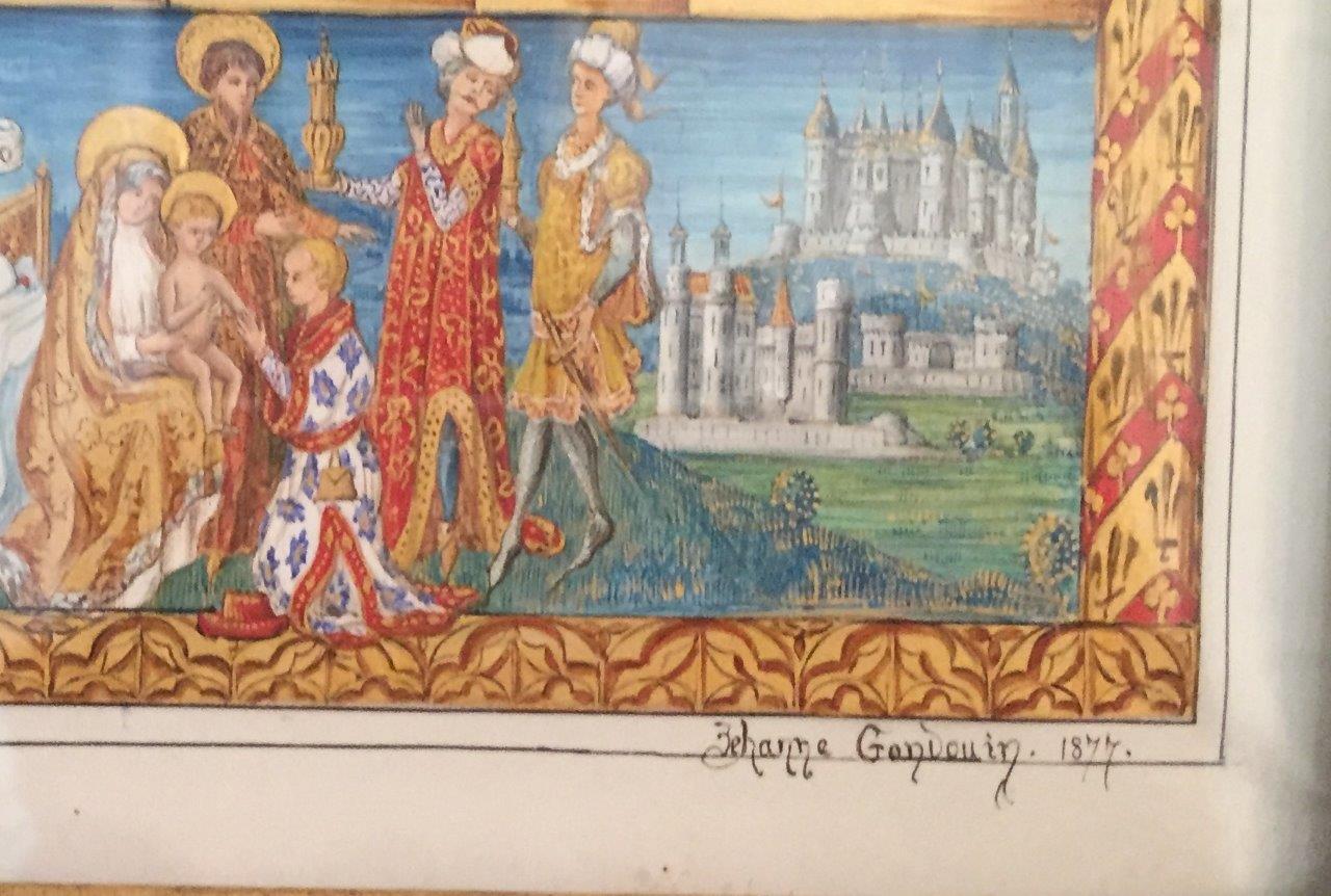 Jehanne GONDOUIN (1851-1942)Page de livres d'heures, 1877.Vélin. Signé en bas...