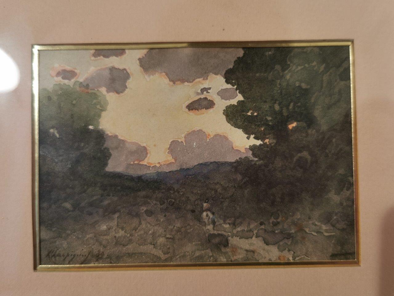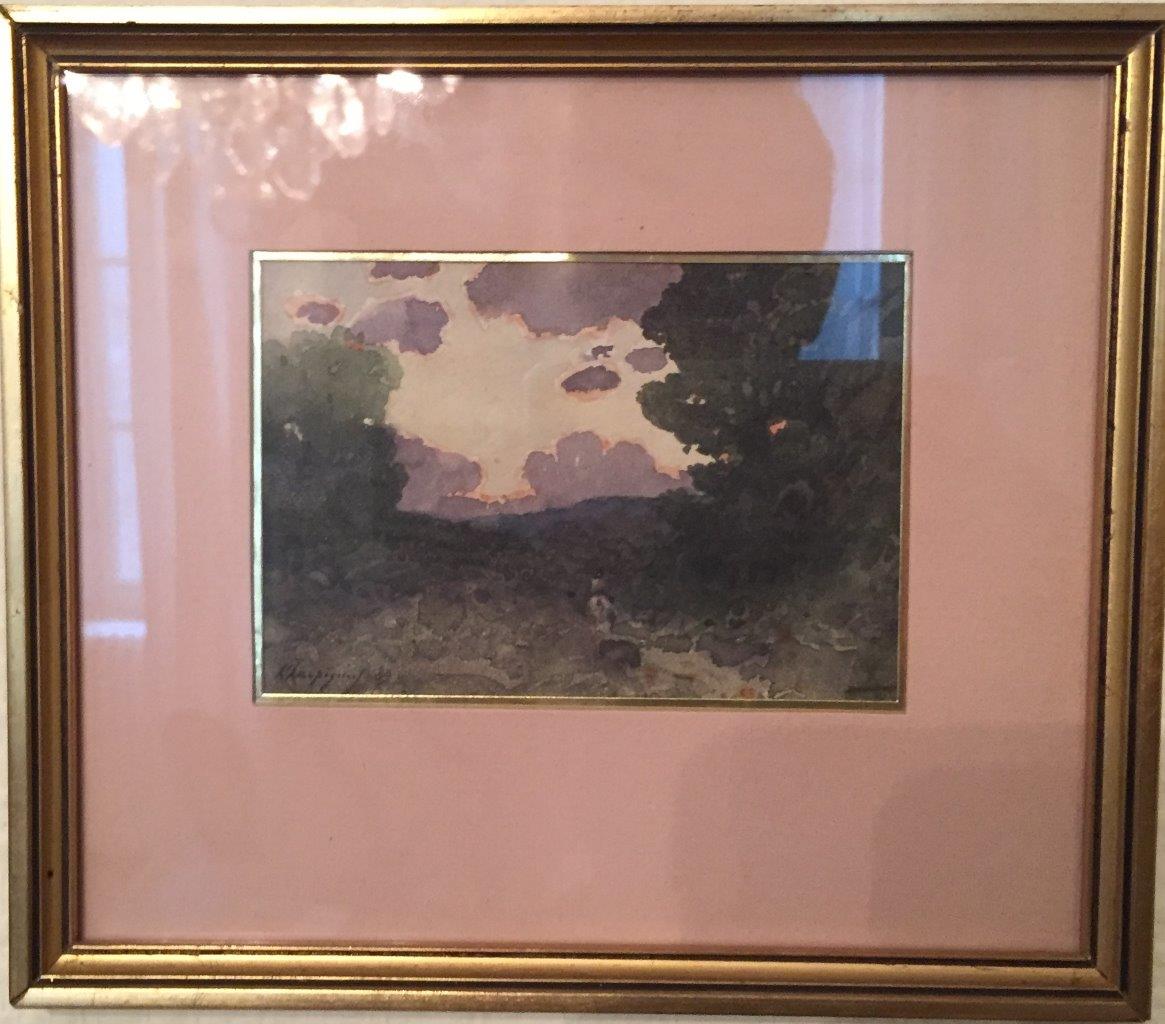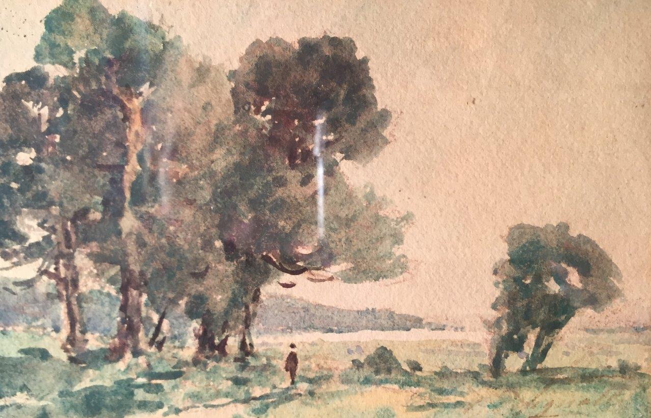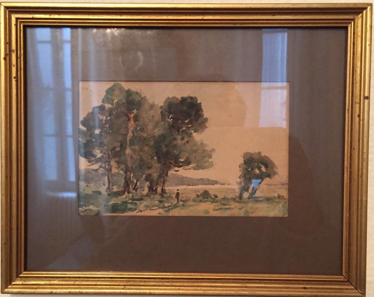 JOINT: École FRANCAISE du XIXe. Vue de campagne. Aquarelle, signée en bas à droite. Haut. 8,5 Larg. 13,5 cm