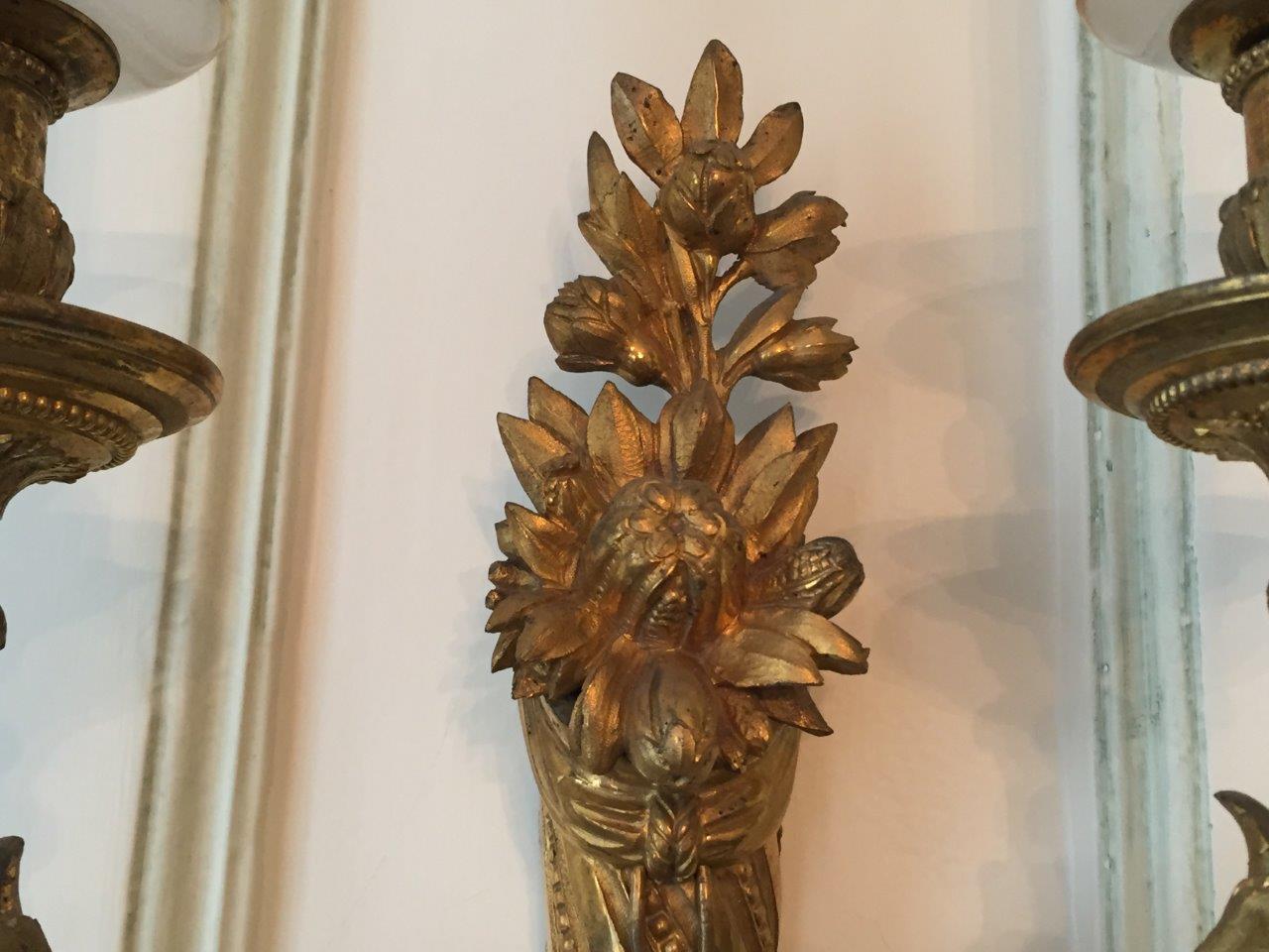 Paire d'APPLIQUES en bronze doré à deux bras de lumières,...