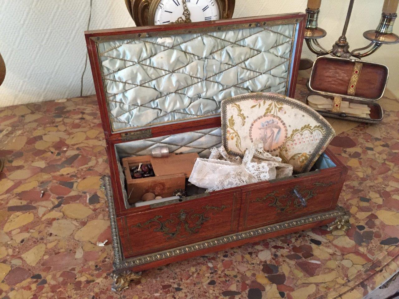 BOITE à COUTURE en bois de placage et marqueterie de...