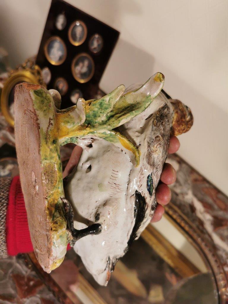 GIEN? TROIS VOLATILES en céramique émaillée, un canard, un paon et une poule d'eau (?),