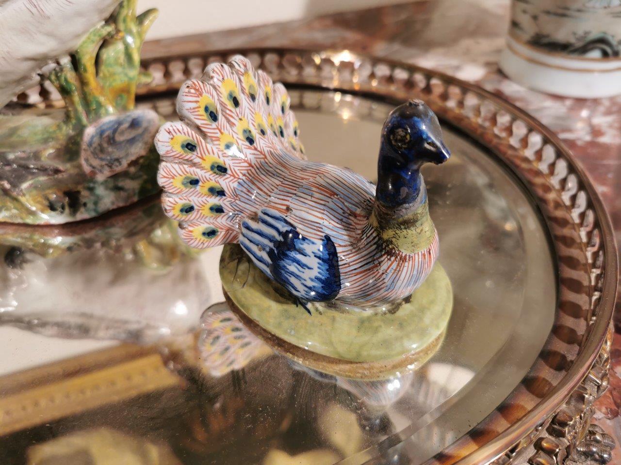 Les paons et poule d'eau marqués "2" pour l'un, "AIH12 104" pour l'autre.