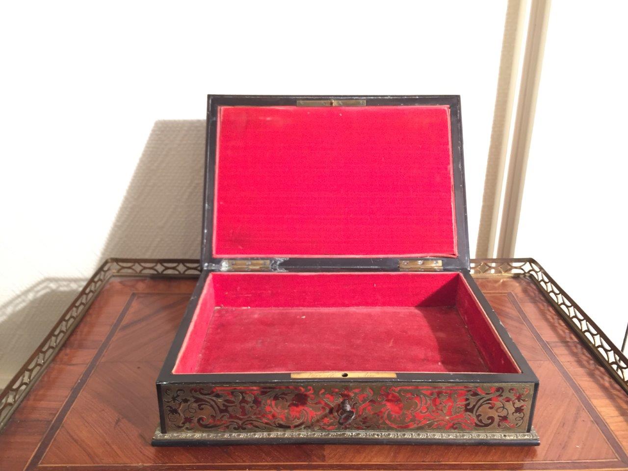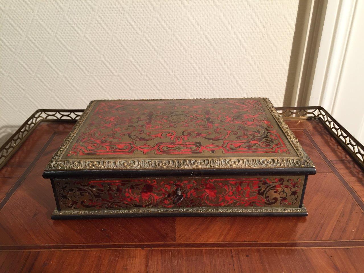 COFFRET en MARQUETERIE dite BOULLE à filet de laiton sur...