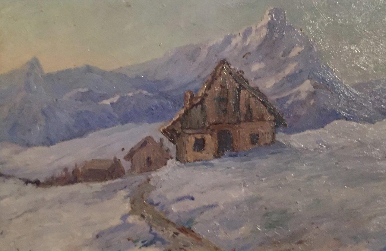 École FRANCAISE de la fin du XIXe. Paysage enneigé.Toile,Haut. 19...