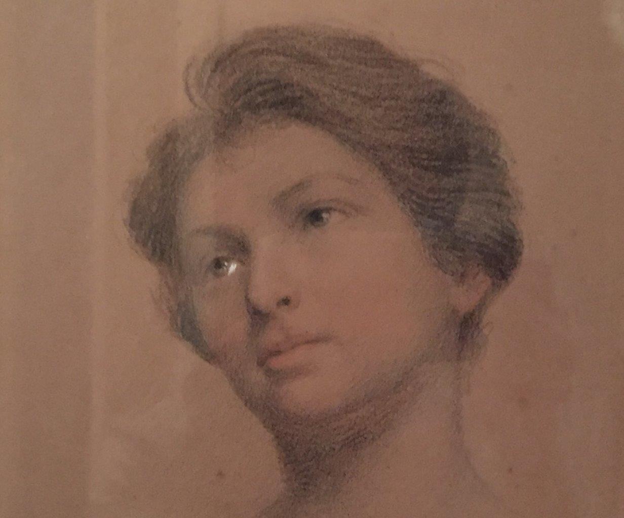 JOINT: École FRANCAISE. Portrait de femme. Dessin au trois crayon. Haut. 23, Larg. 17 cm. (ex 63, 568 et 100)