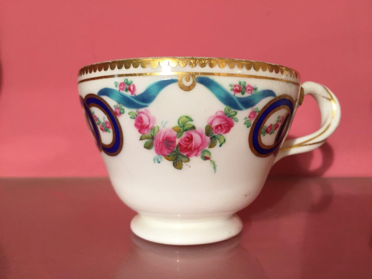PARIS. SERVICE en porcelaine à décor floral, composé deux TASSES...