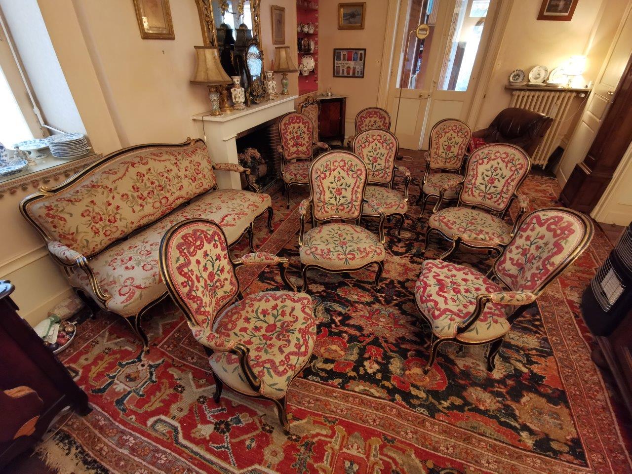 SALON comprenant UN CANAPÉ, HUIT FAUTEUILS  en bois mouluré...