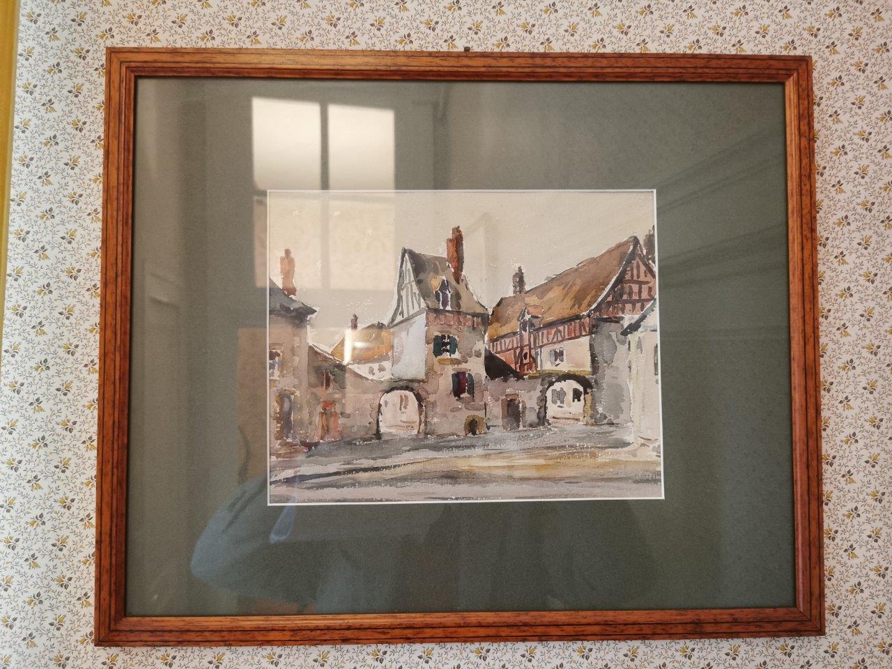 Dans l’anti-chambre JOINT: Guy de RUBERCY, Le pont de Gien, aquarelle, Haut. 13, Larg. 20 cm.