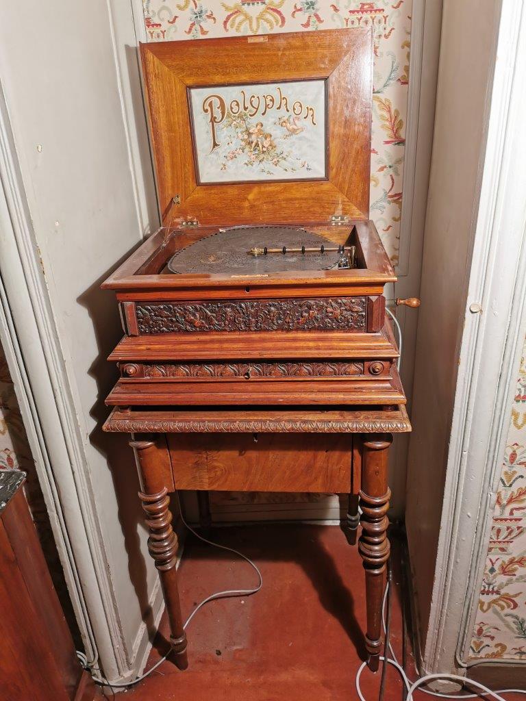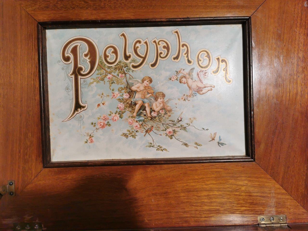 Beau POLYPHON, avec son casier plein d’environ vingt-cinq disques métalliques,...