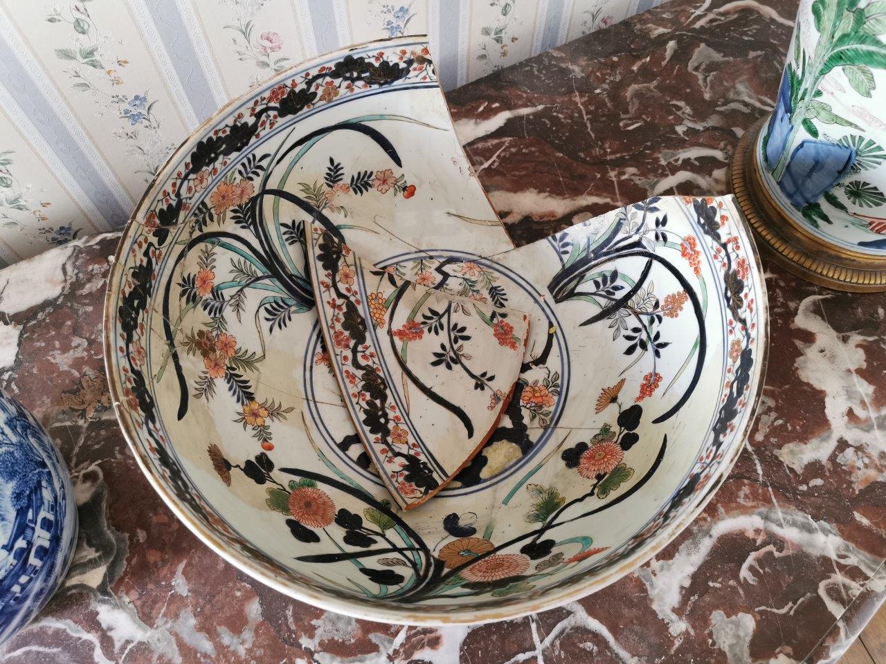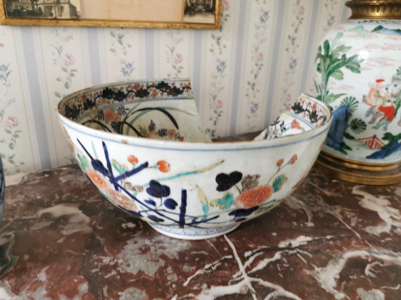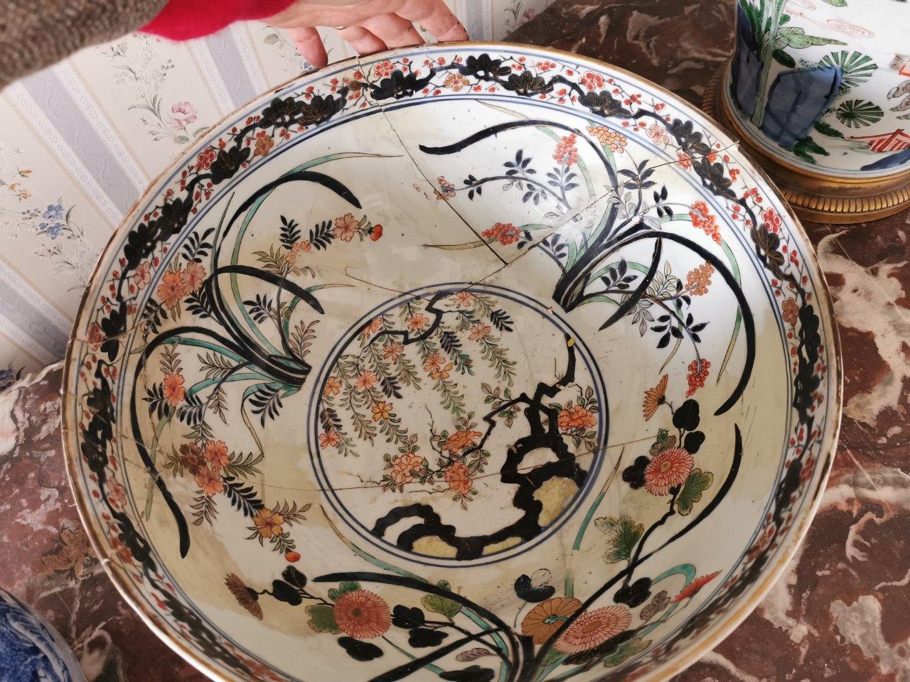 JAPON, XVIIIe. Grande COUPE en porcelaine à décor de fleurs....