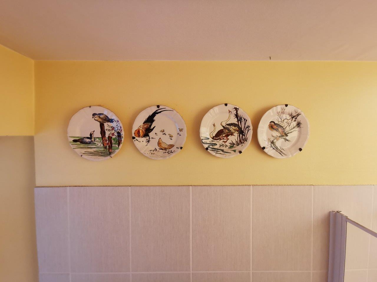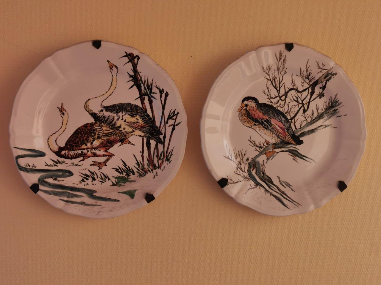 GIEN. QUATRE ASSIETTES au décor de volatiles japonisant. ROUARD 34...