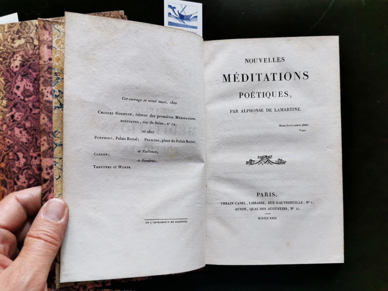 - Nouvelles méditations poétiques. Paris, Urbain Canel et Audin, 1823. In-8, (2ff), 2pp, 179 pages.