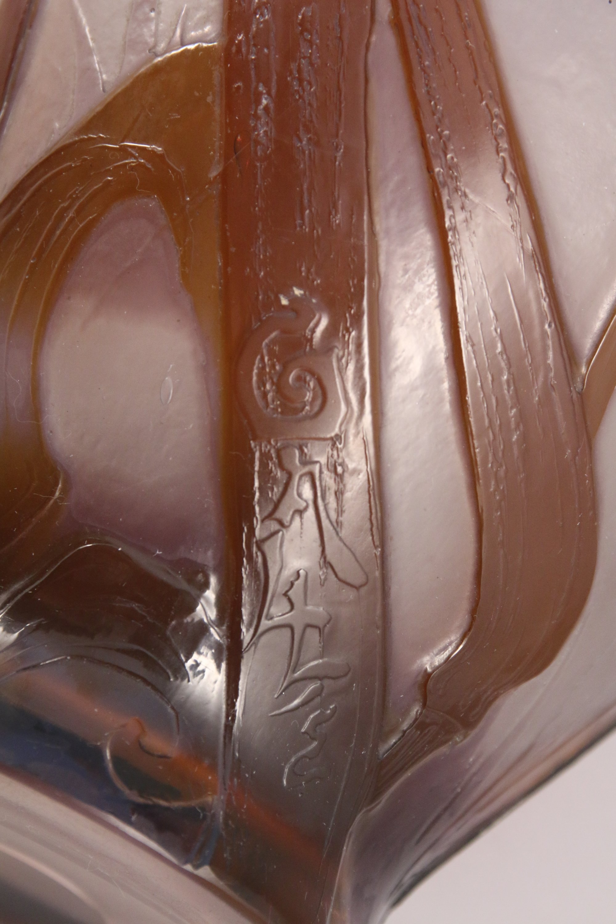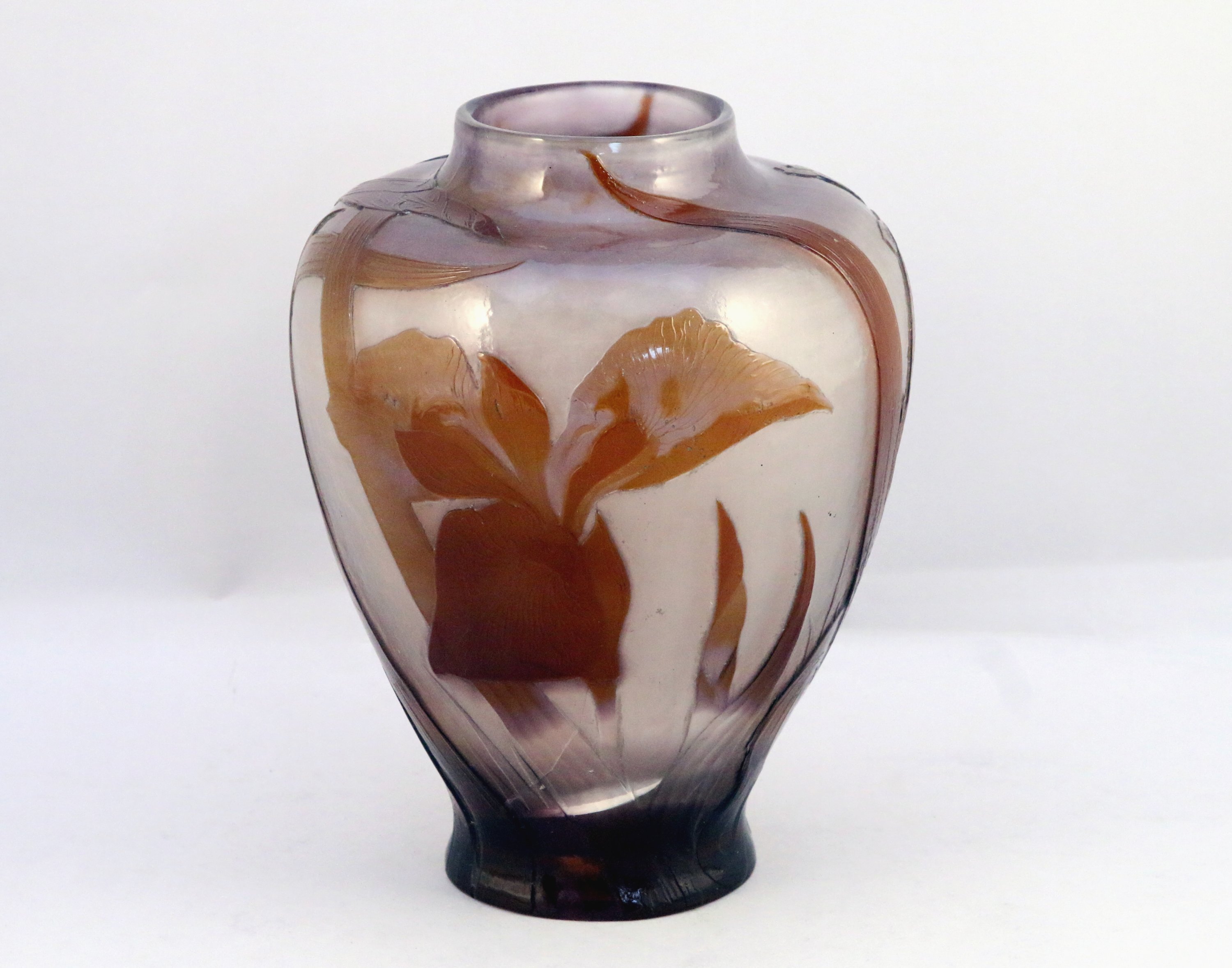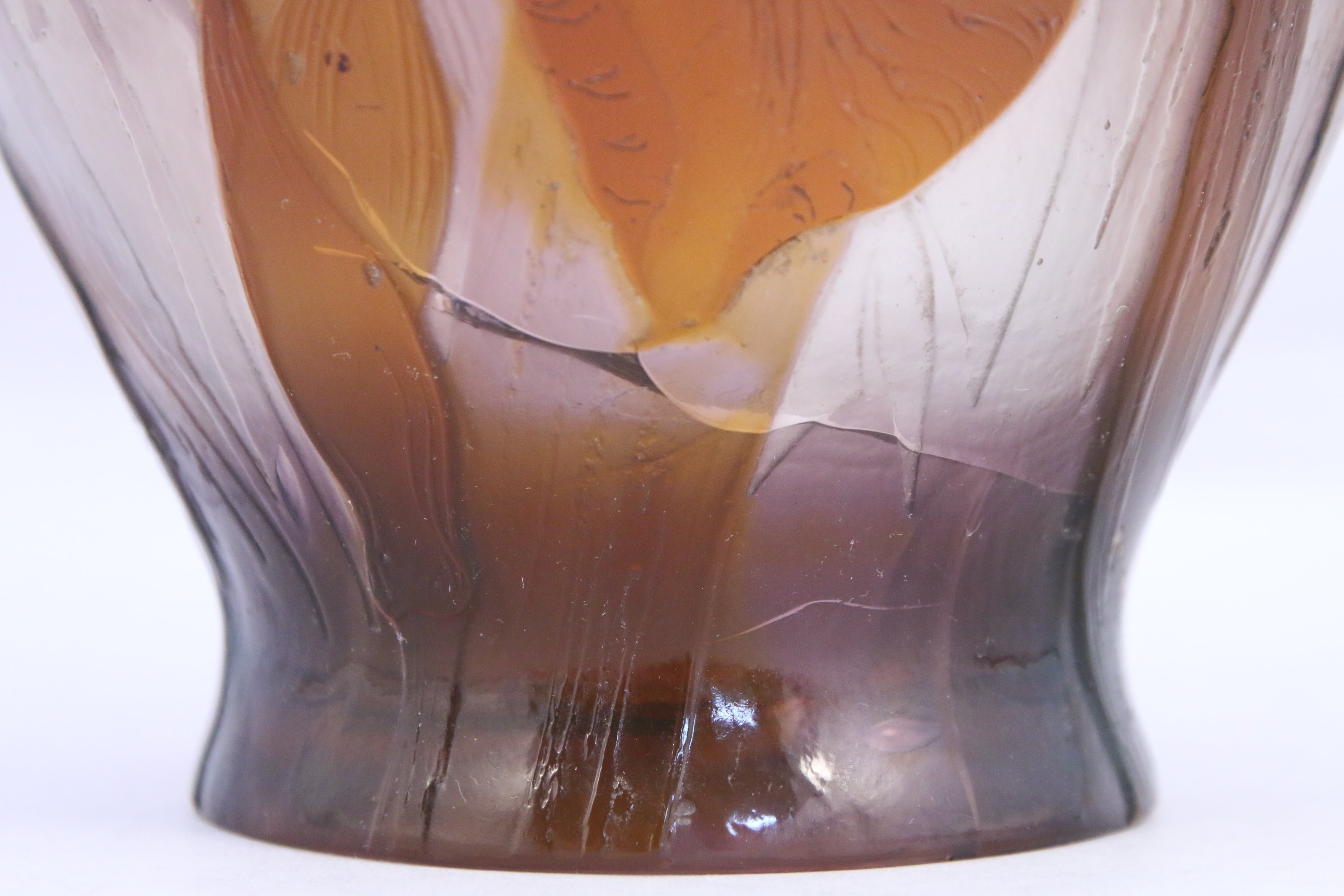 en verre multicouche dégagé à l'acide, la panse renflée.
