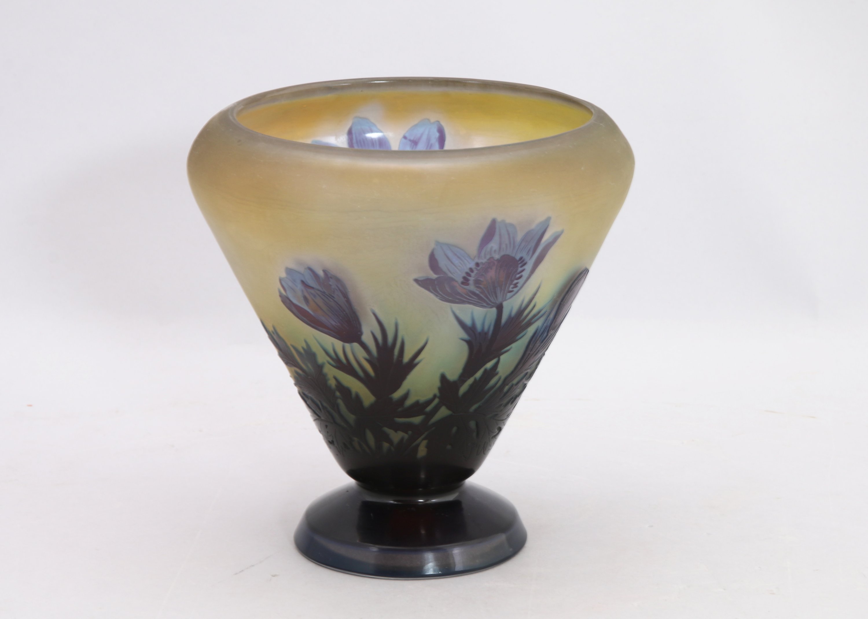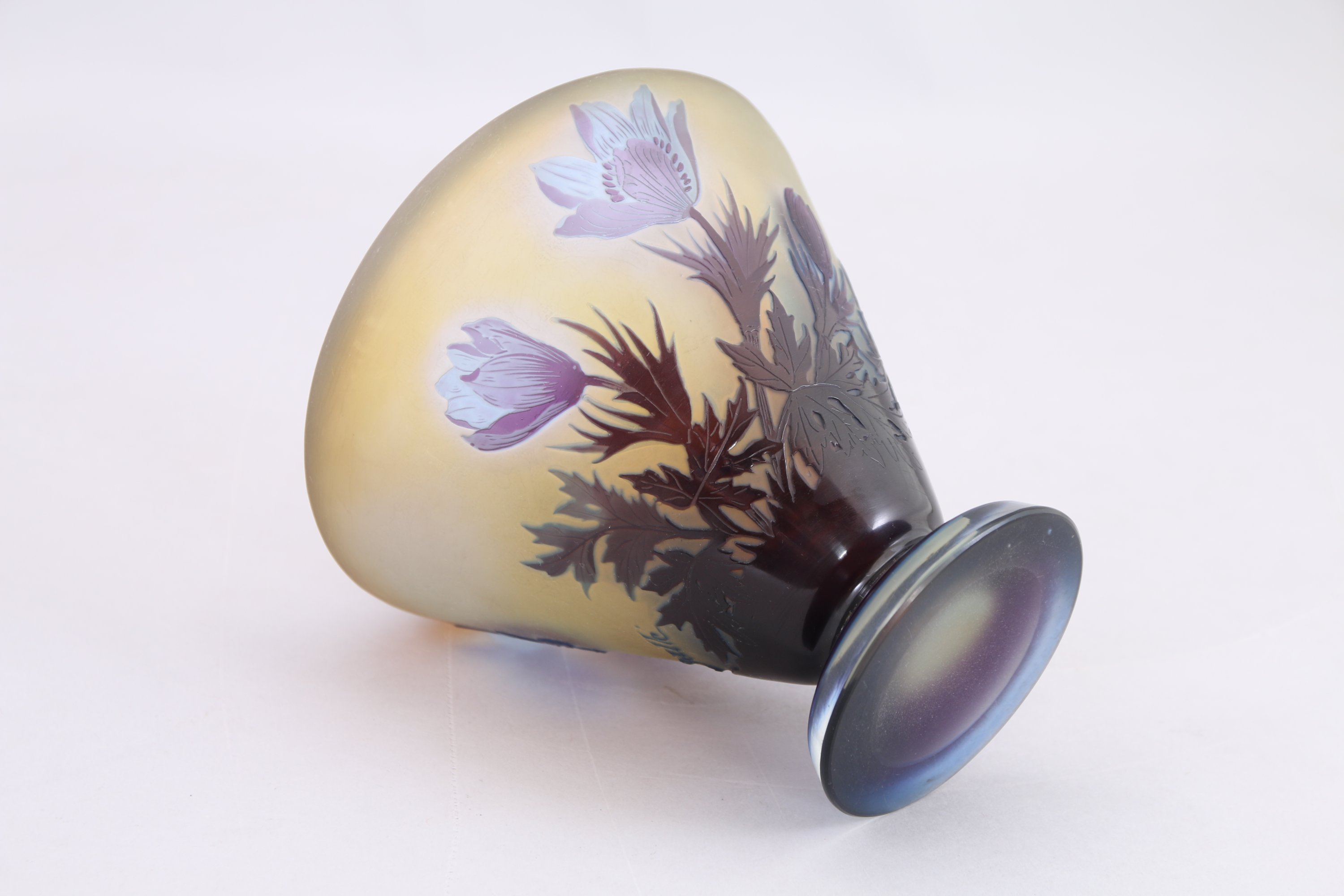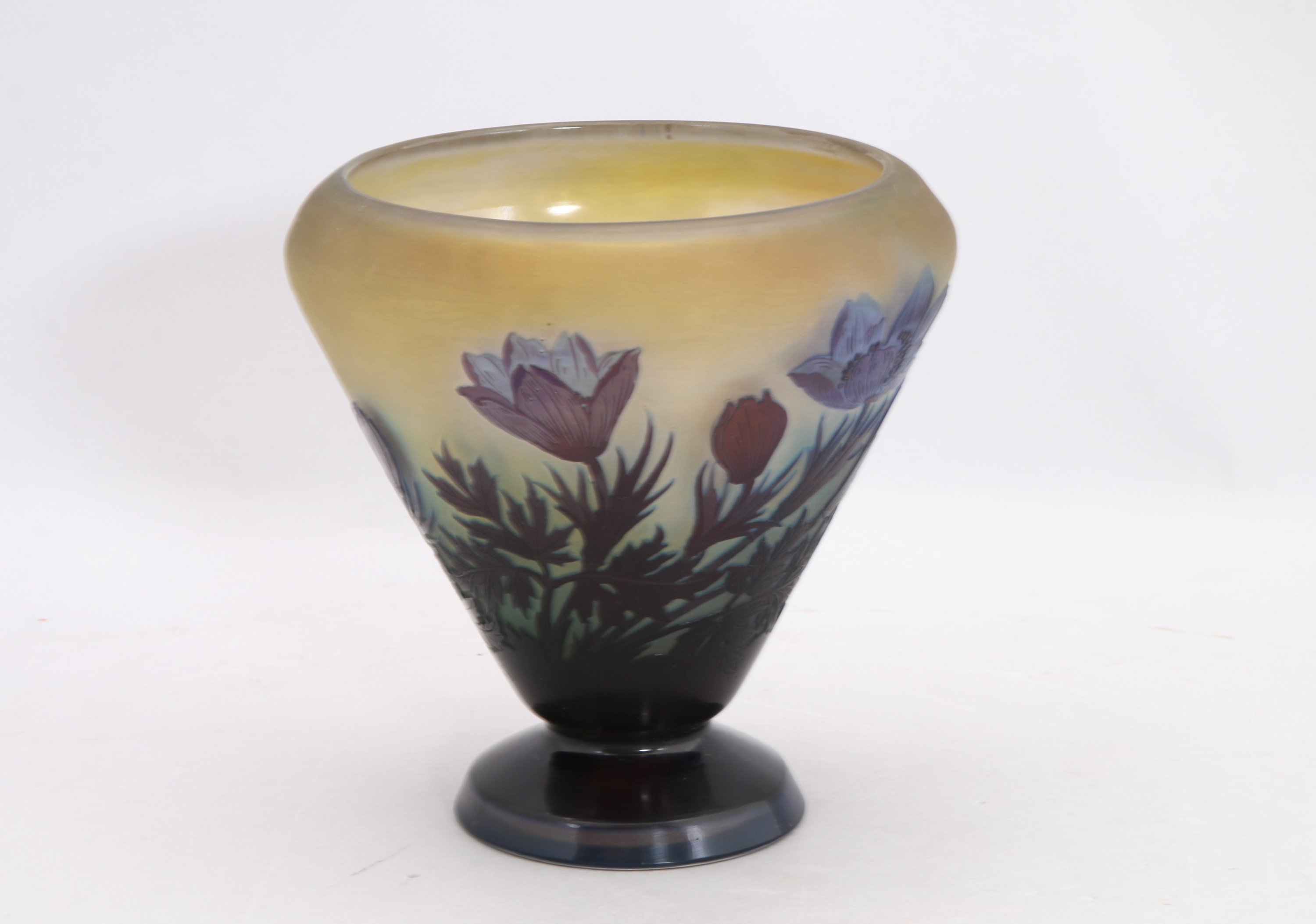 Établissements GALLÉ. Grand calice aux anémones en verre multicouche prune...