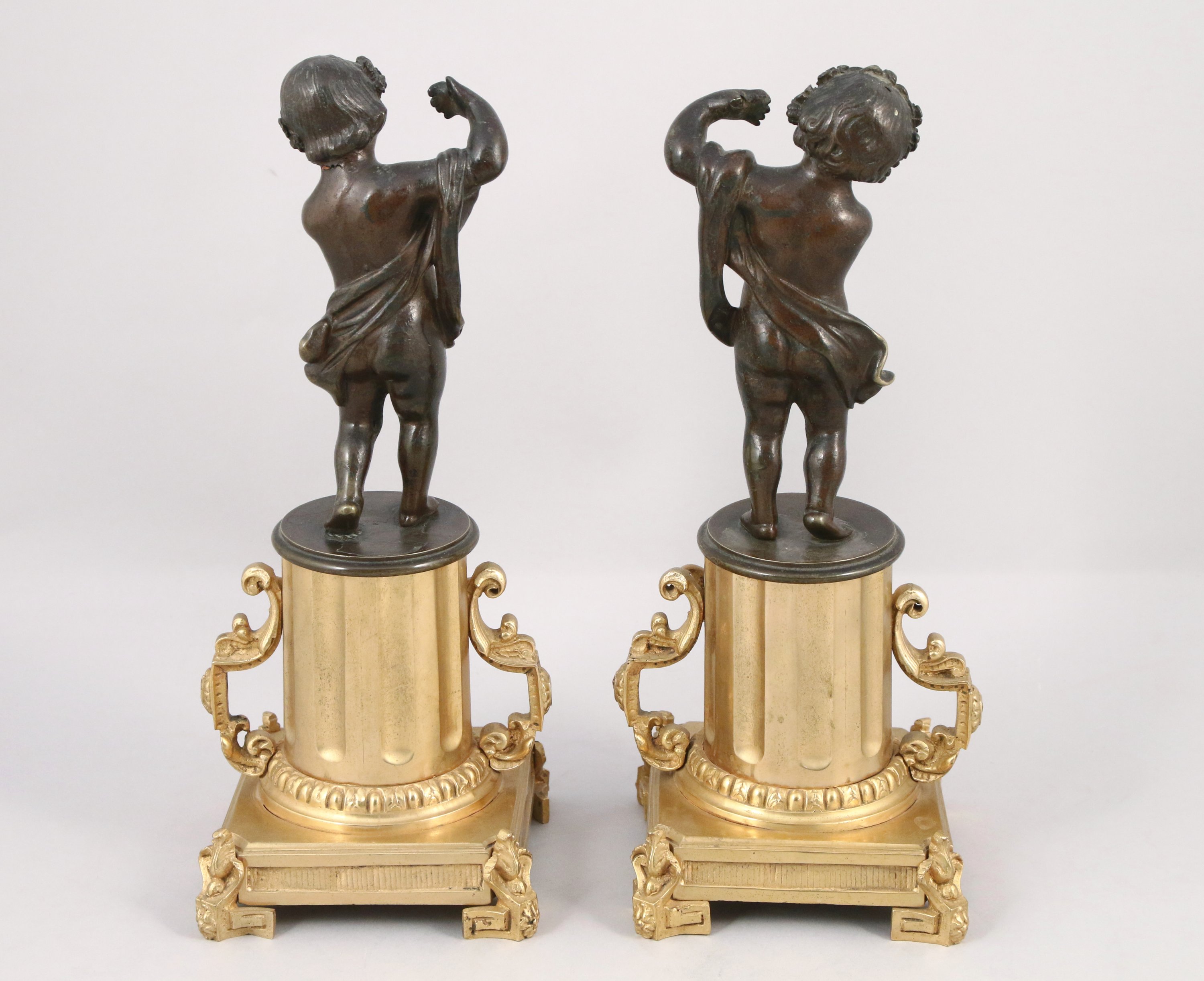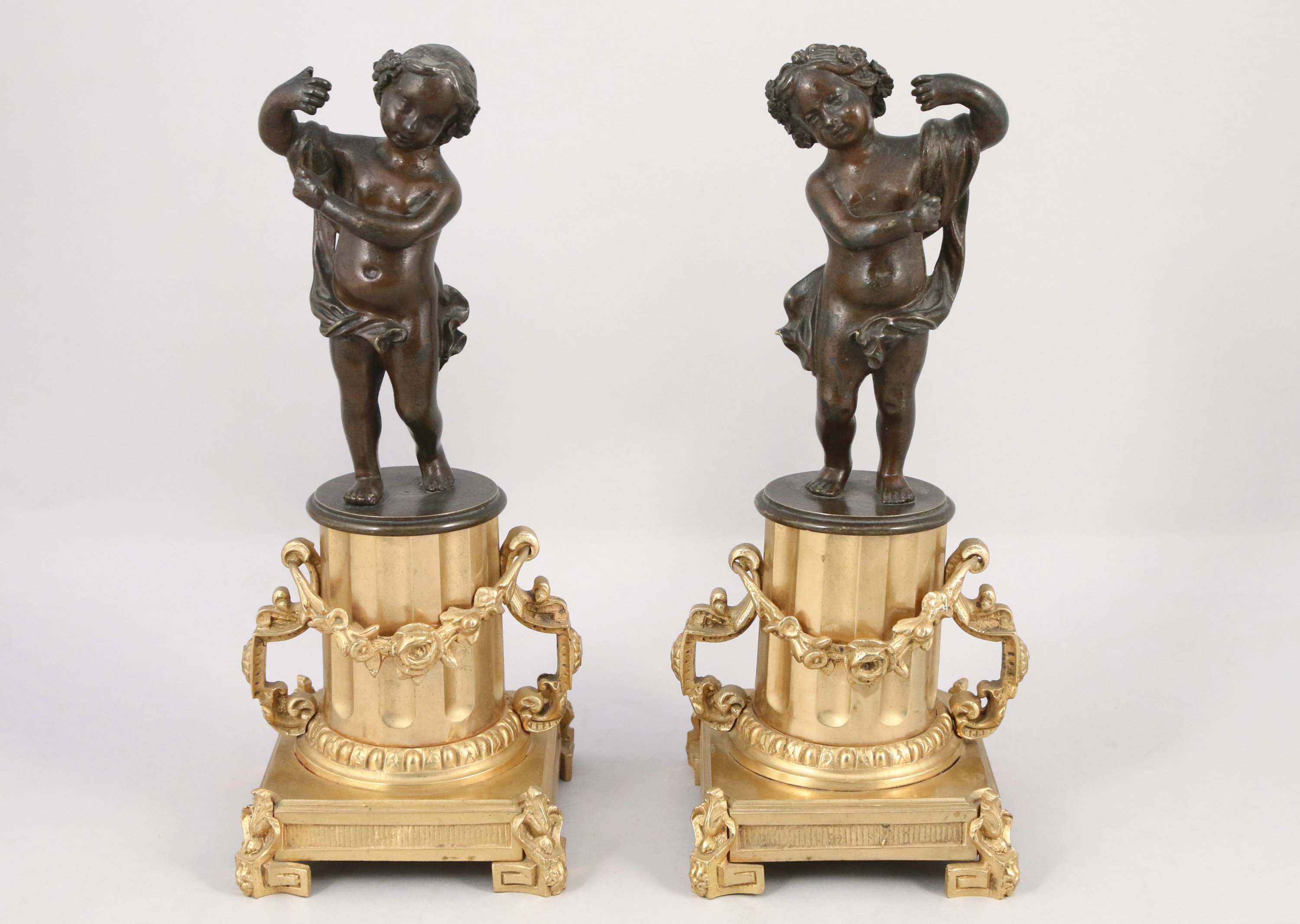 Sur un socle en bronze doré prenant la forme d'une colonne cannelée à décor de guirlandes fleurie.
