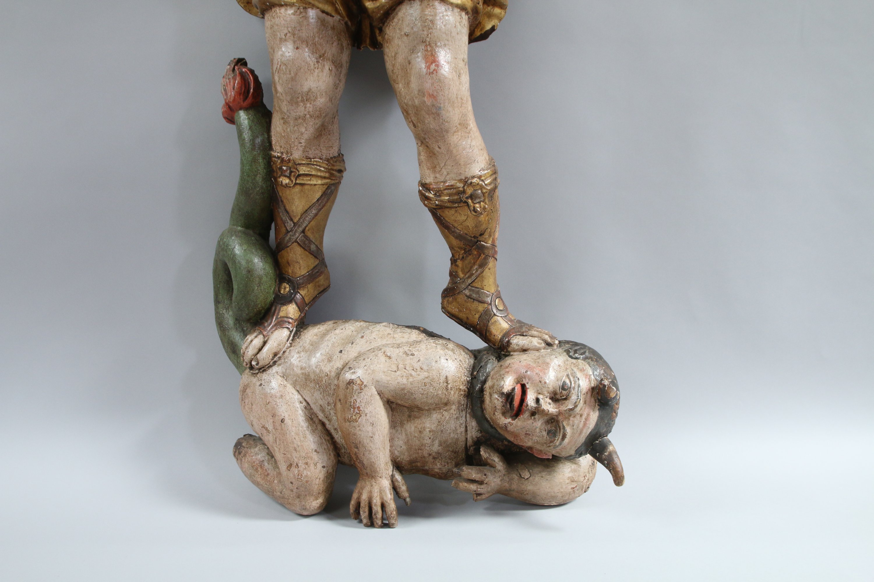 Sculpture en fort relief en bois polychrome et doré, dos évidé.