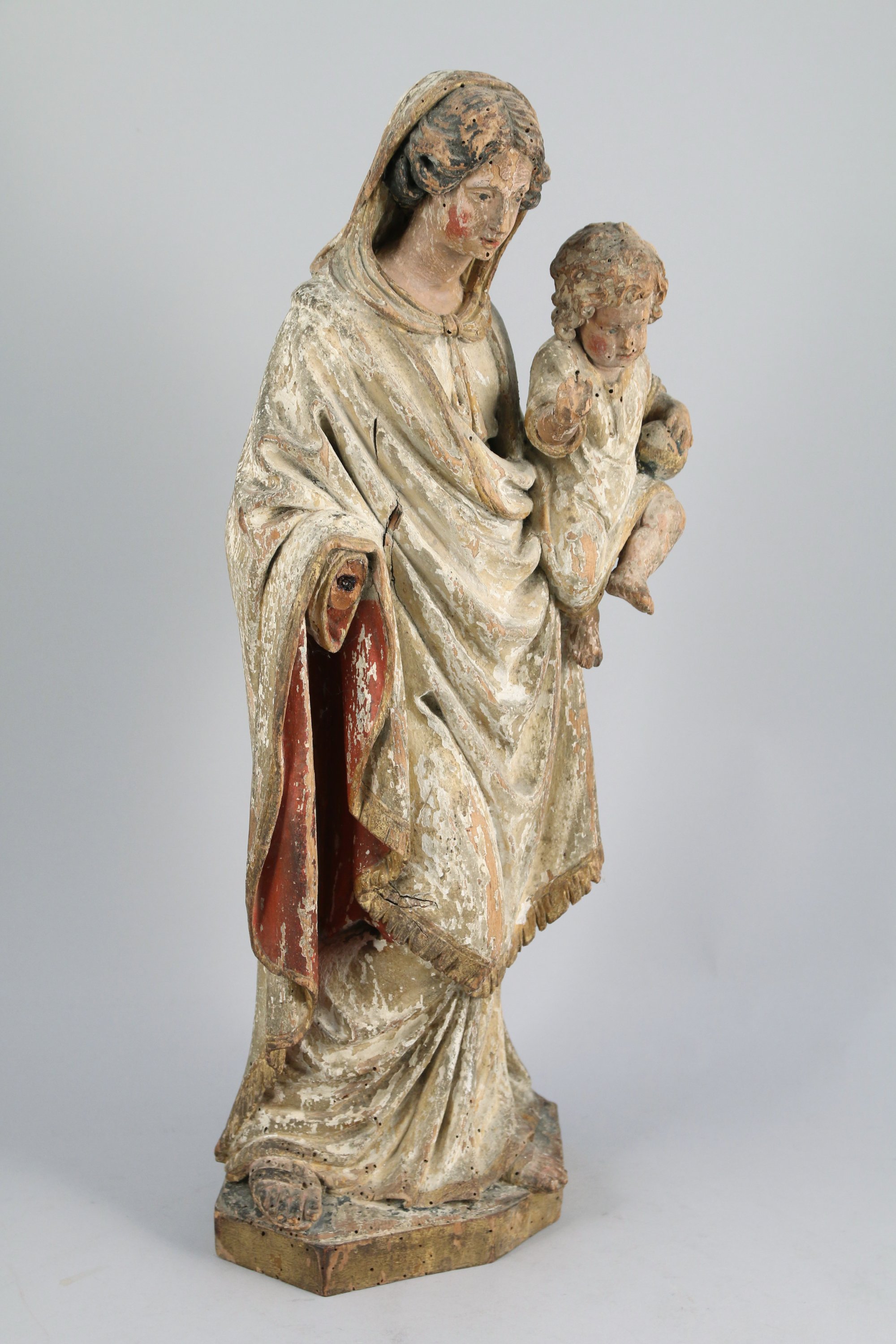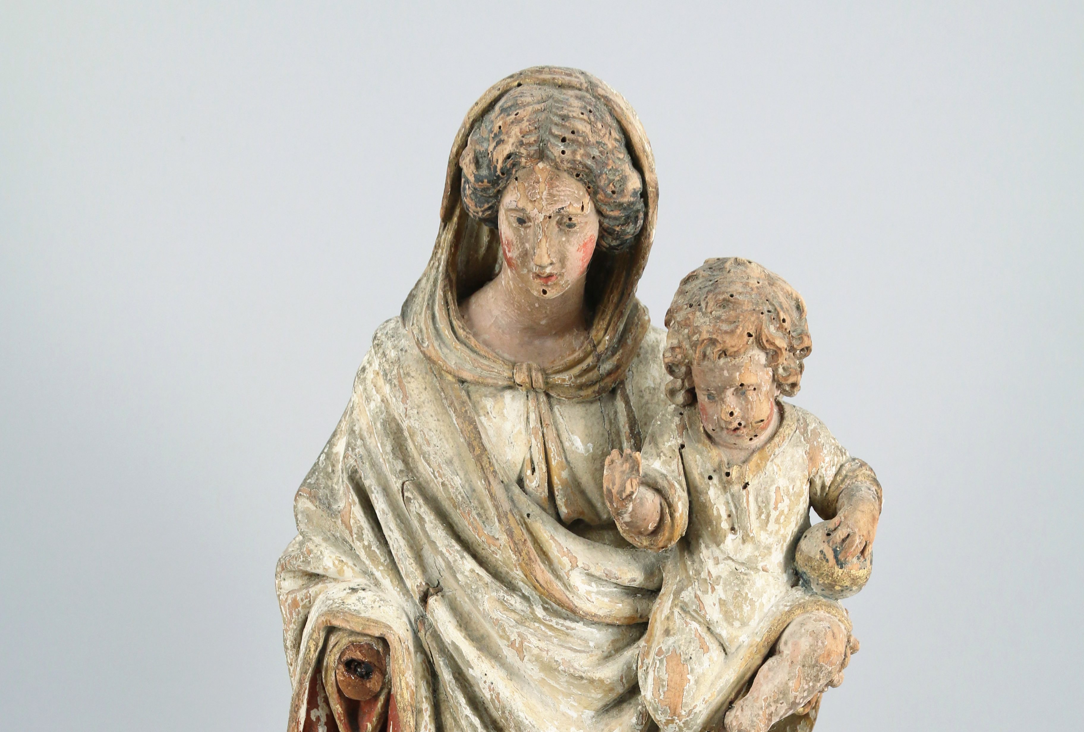 (Manque avant-bras droit de la Vierge, accidents et lacunes à la polychromie).