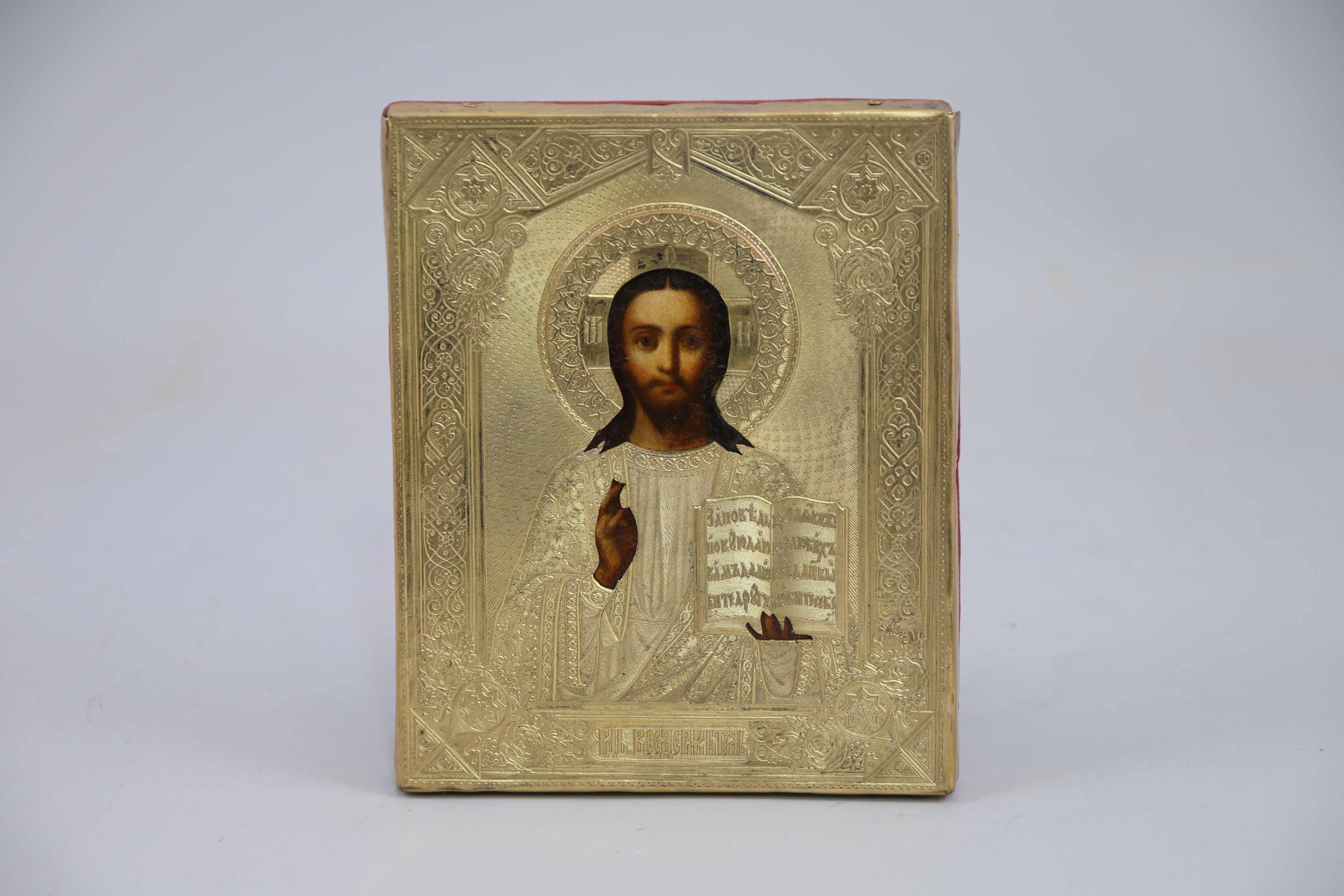 RUSSIE. ICÔNE au Christ bénissant et tenant les saintes écritures.