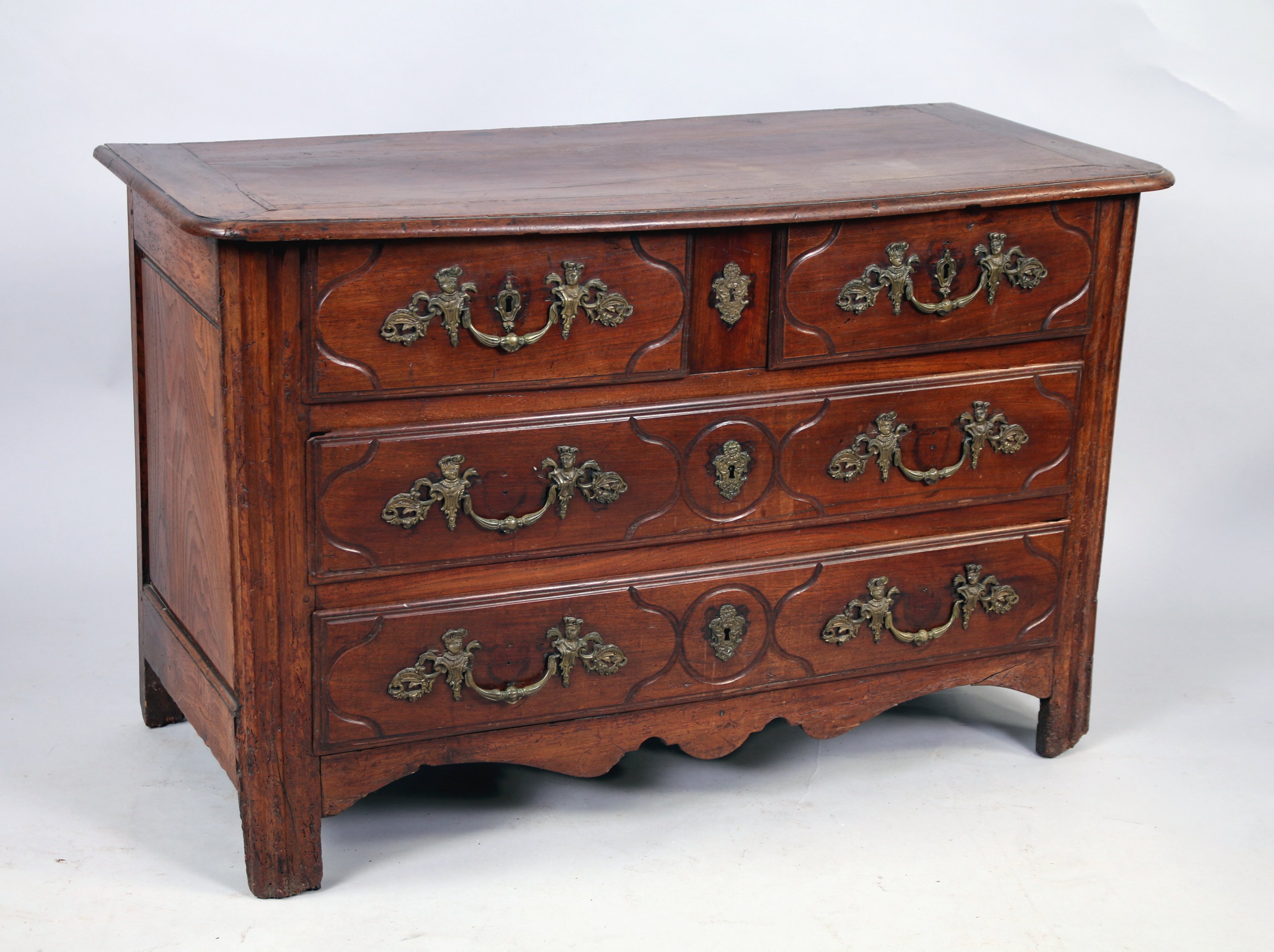 ouvrant par quatre tiroirs sur trois rangs. Ils sont scandés par des polylobes gravés alternant avec des serrures inscrites dans des médaillons.