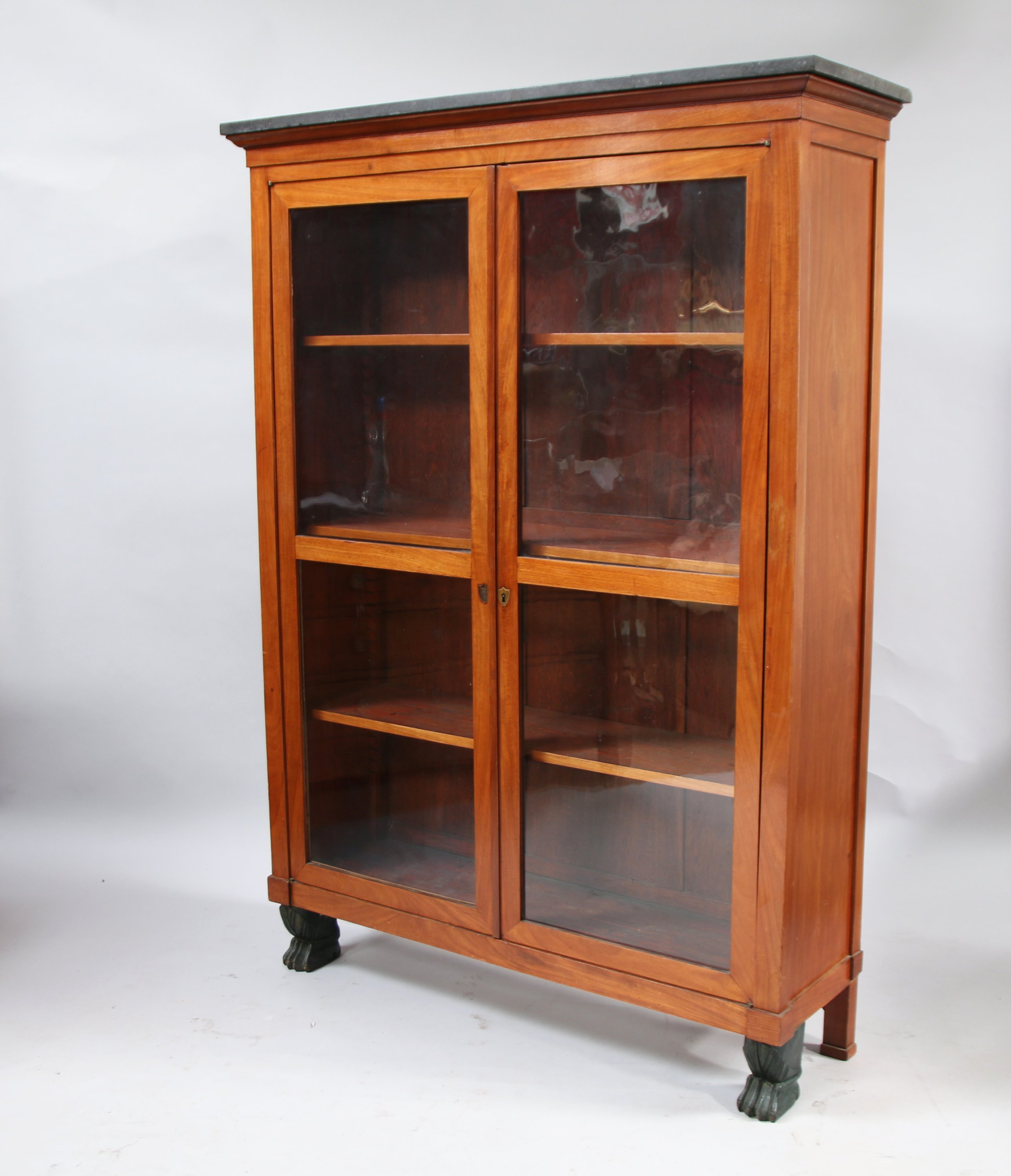 ouvrant par deux portes vitrées. Elle repose deux pieds antérieurs griffes en bois teinté vert.