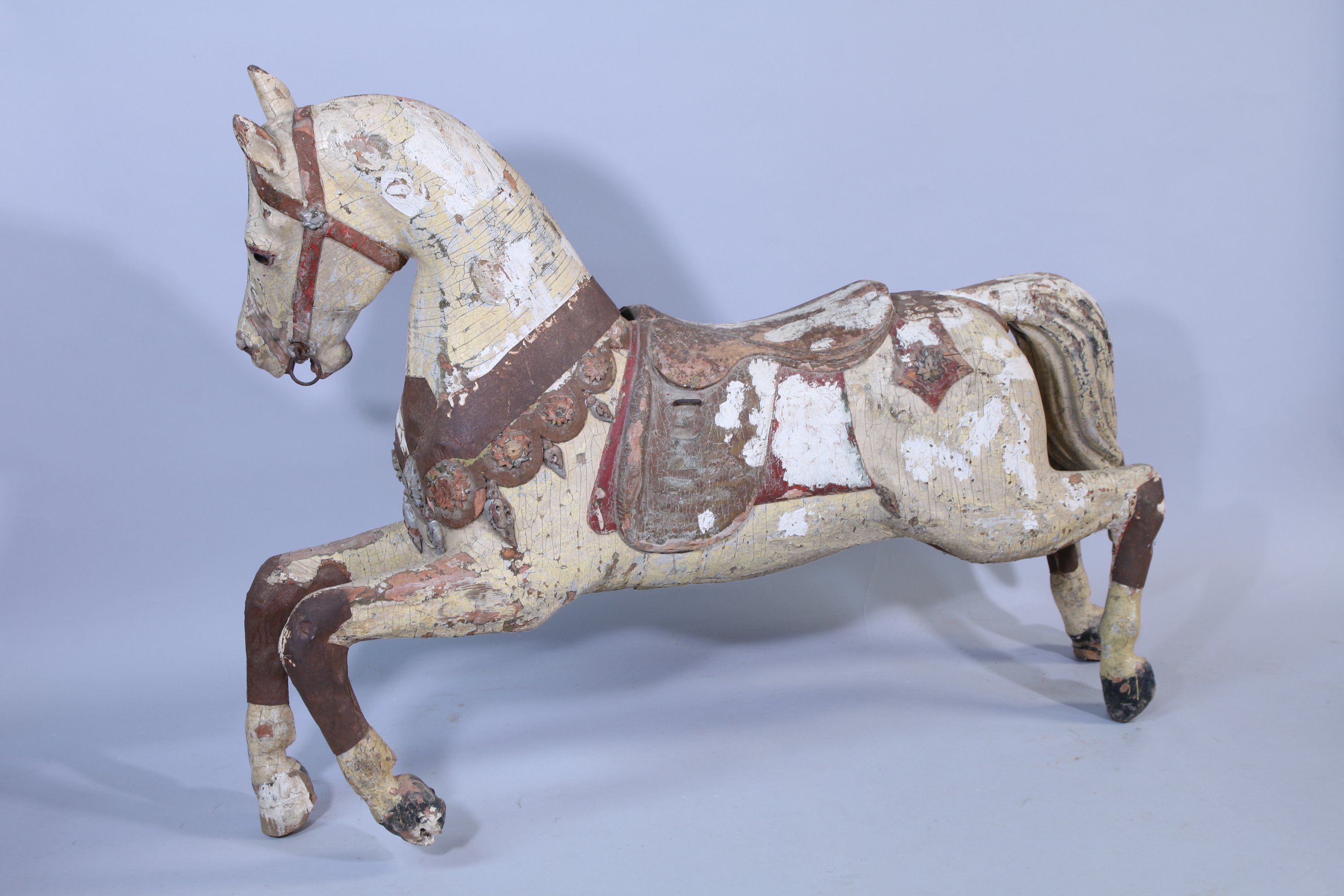 Gustave Bayol (Avignon, 1859 Angers, 1931), débute sa carrière comme sculpteur à Angers et à la demande d'un forain commence à réaliser des sujets de manège. Les animaux domestiques et ceux de la ferme constituent l'essentiel du répertoire de son atelier. Ils ont, a l'instar de notre cheval, la caractéristique d'être réalistes et expressifs.