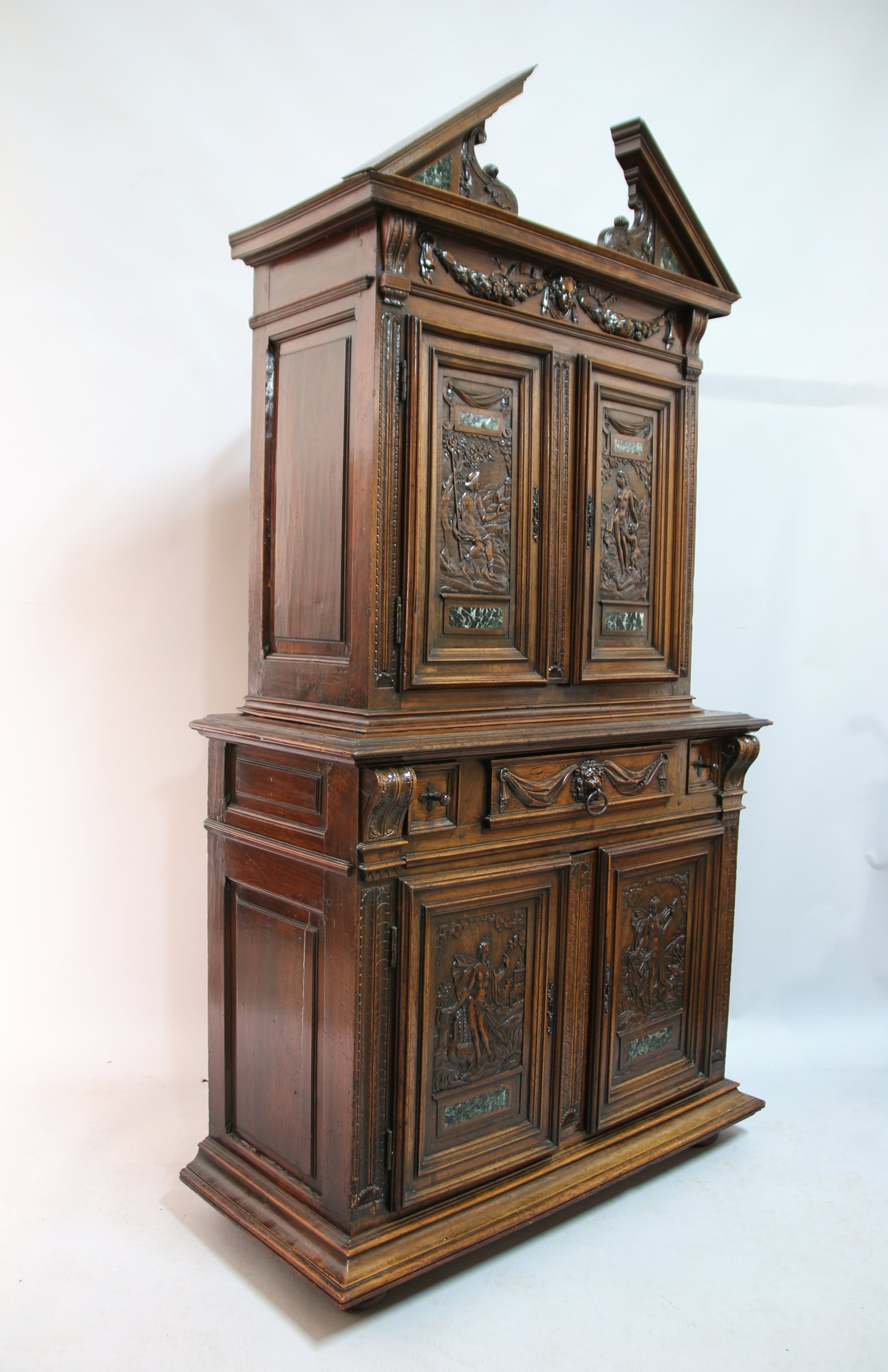 Meuble deux-corps en noyer mouluré et sculpté,