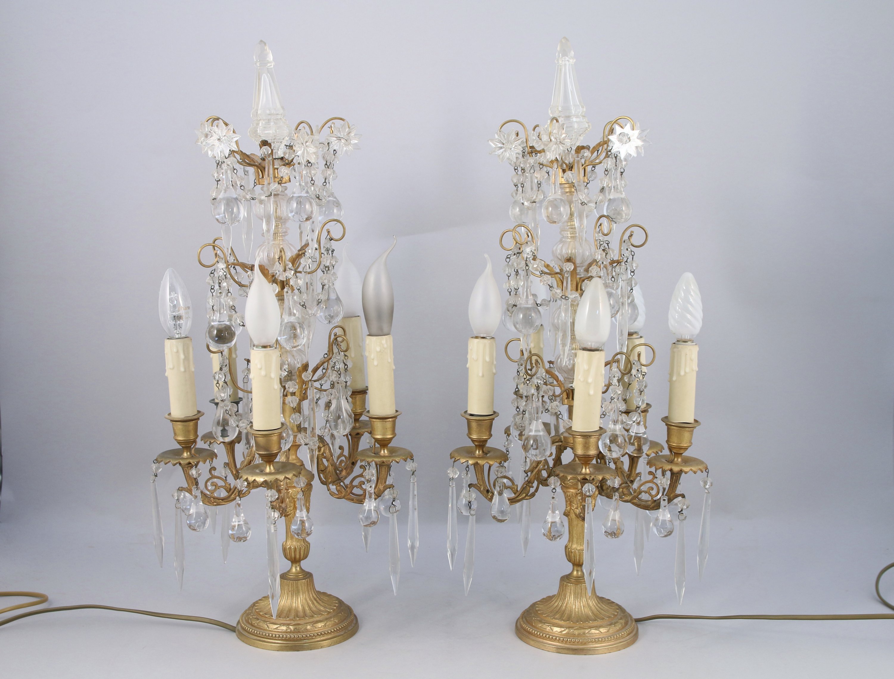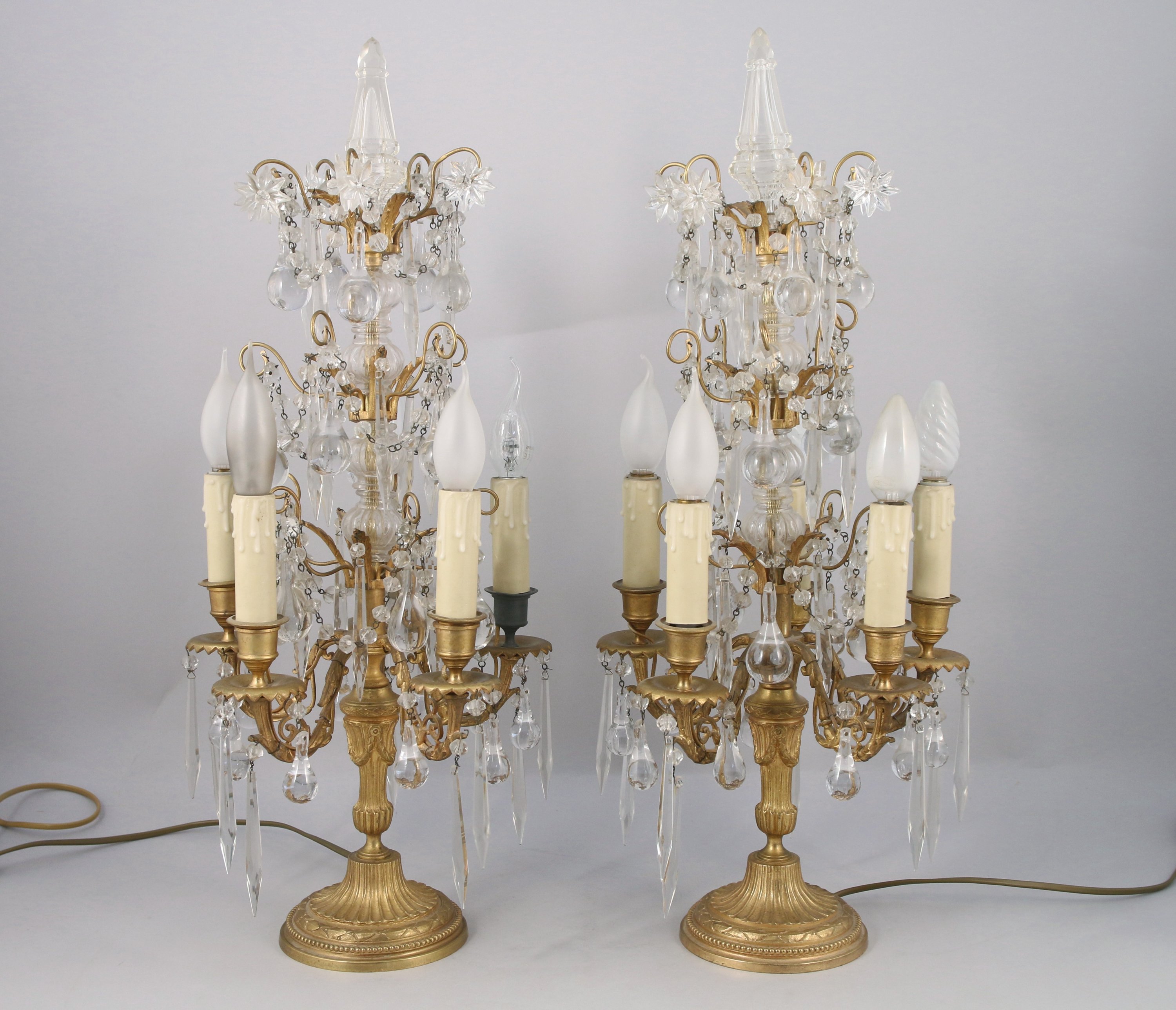 Haut. 64 cm. (électrifiées, pendeloques à refixer).