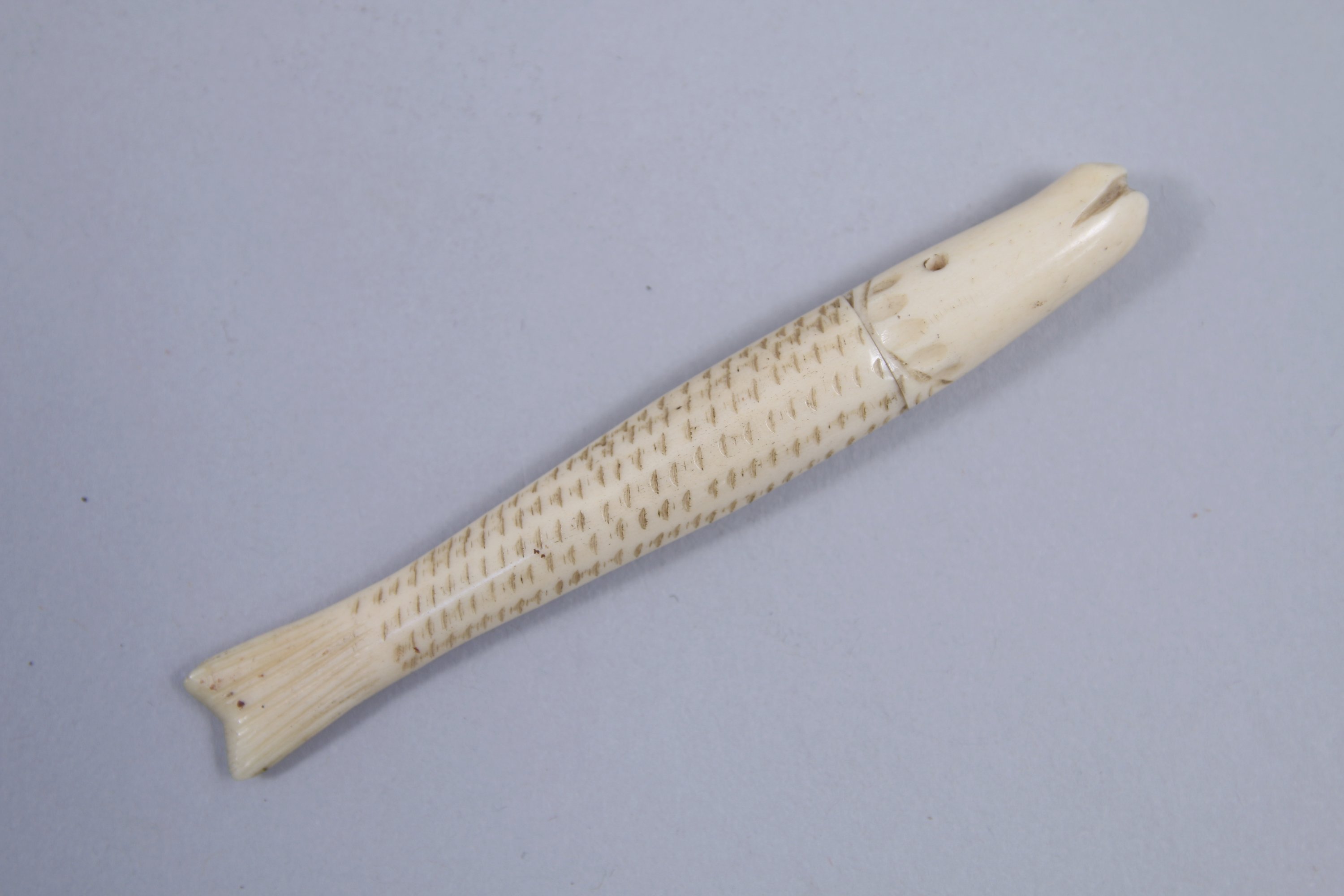 PORTE AIGUILLE figurant un poisson, les écailles figurées par des motifs gravés.