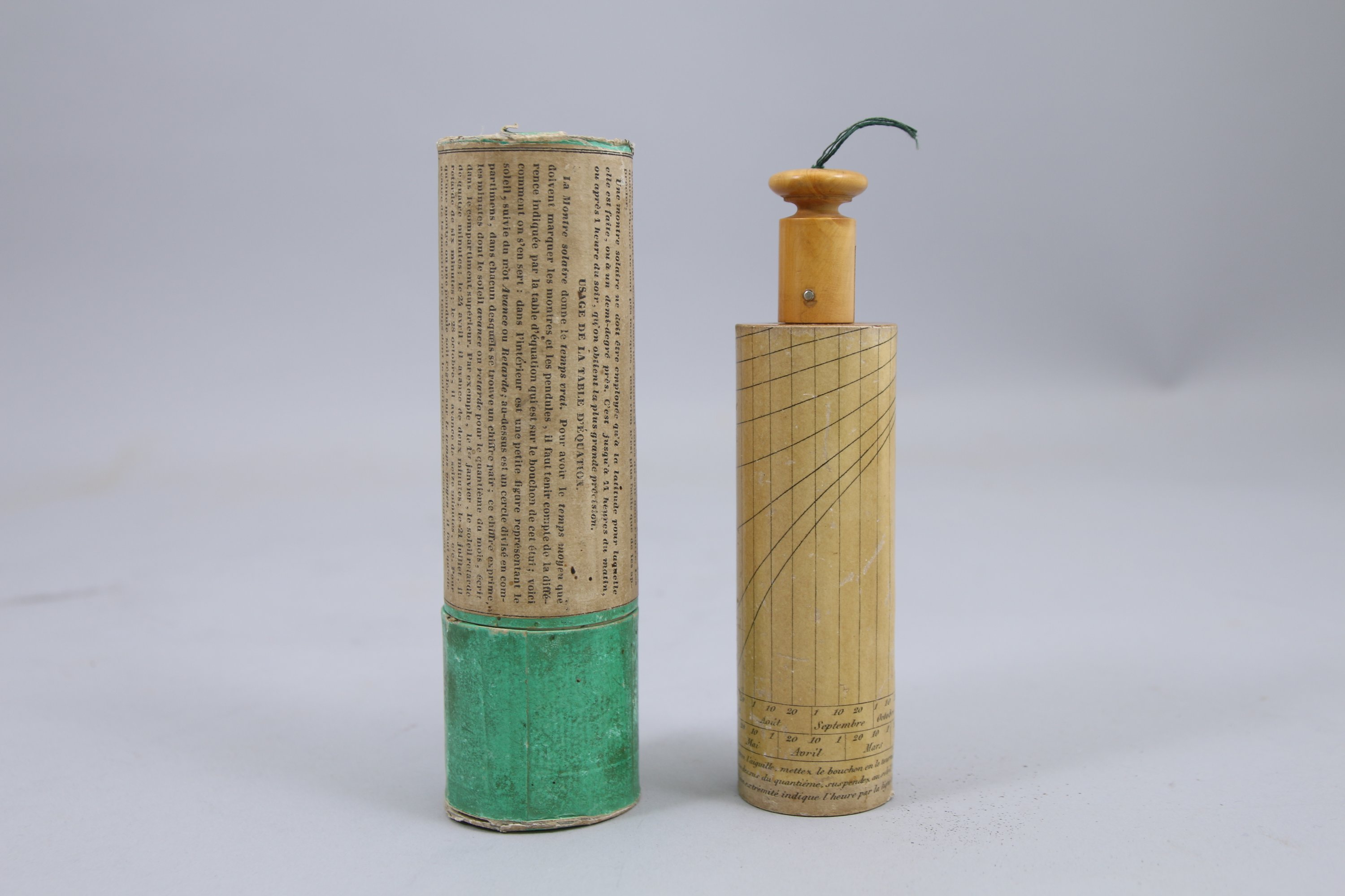 en colonne en buis. Le corps présentant l'échelle des hauteurs correspondantes aux latitudes de Foix, Marseille, l'île d'Elbe, Piomnino et les mois de l'année. L'usage est précisé par une notice en partie inférieure.