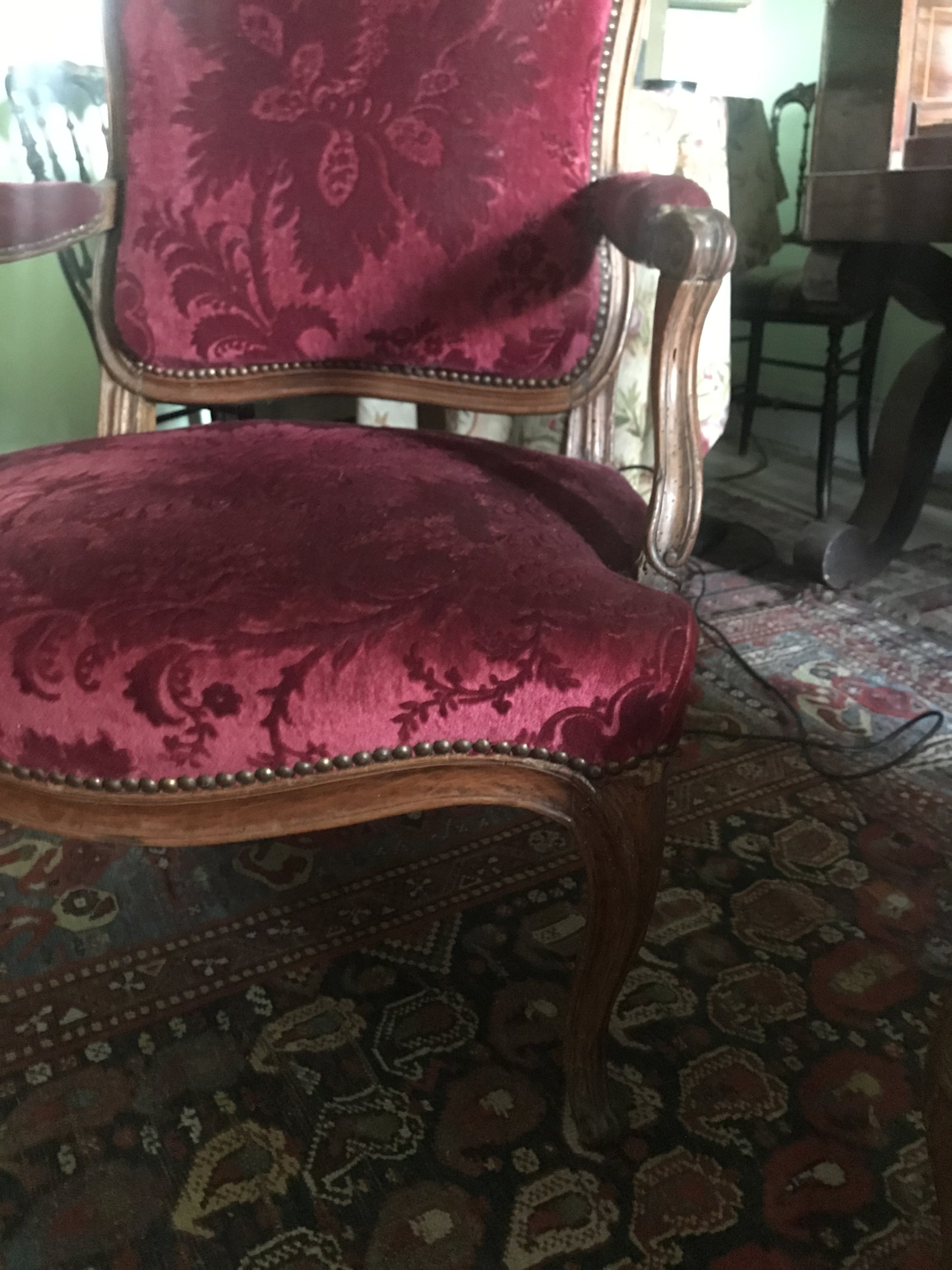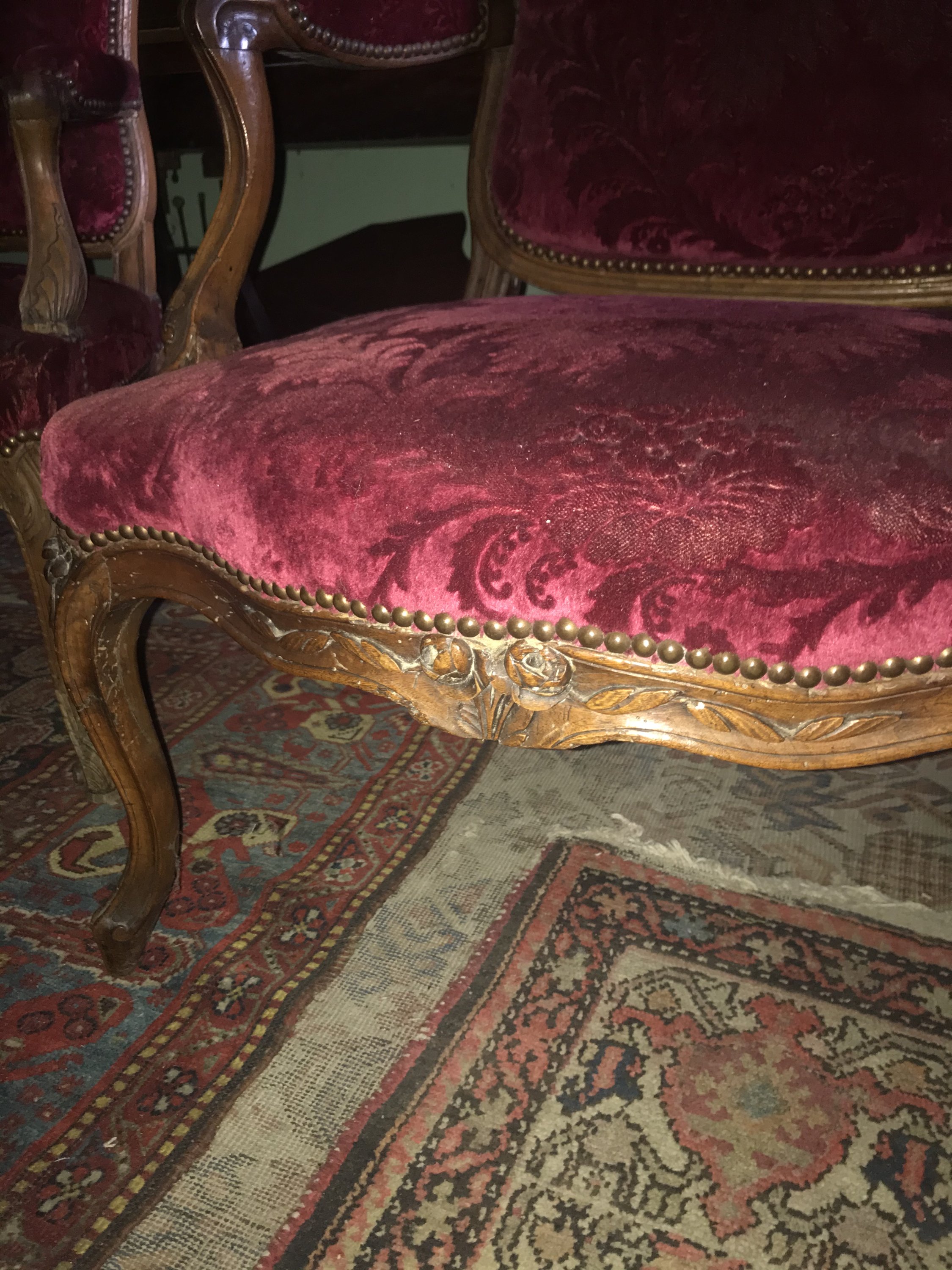 Recouverts dun velours rouge frappé moderne à décor de larges fleurs épanouies.