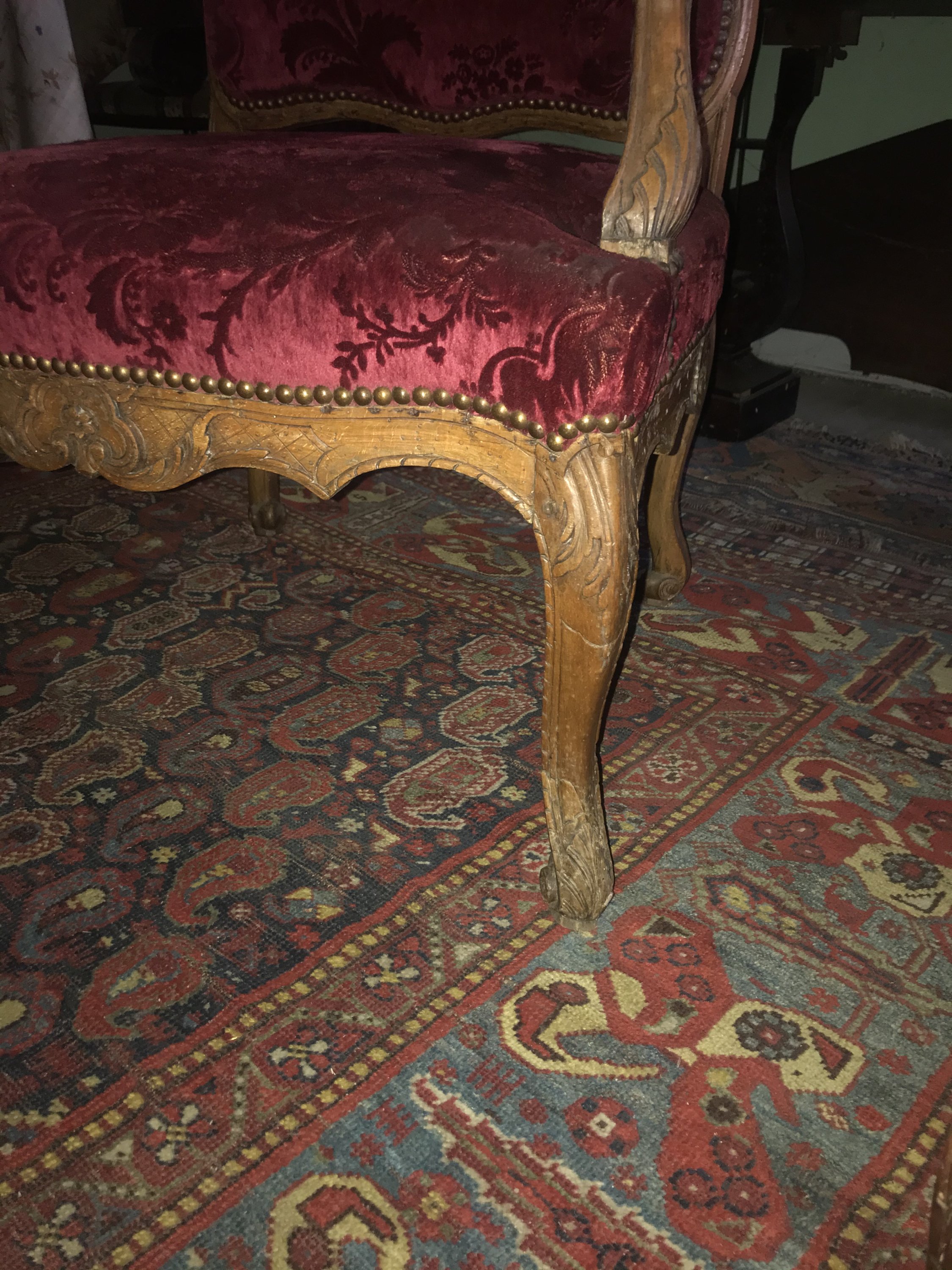 Fauteuil aux consoles aux feuilles dacanthe: Haut. 94, Larg. 69, Prof. 59 cm.