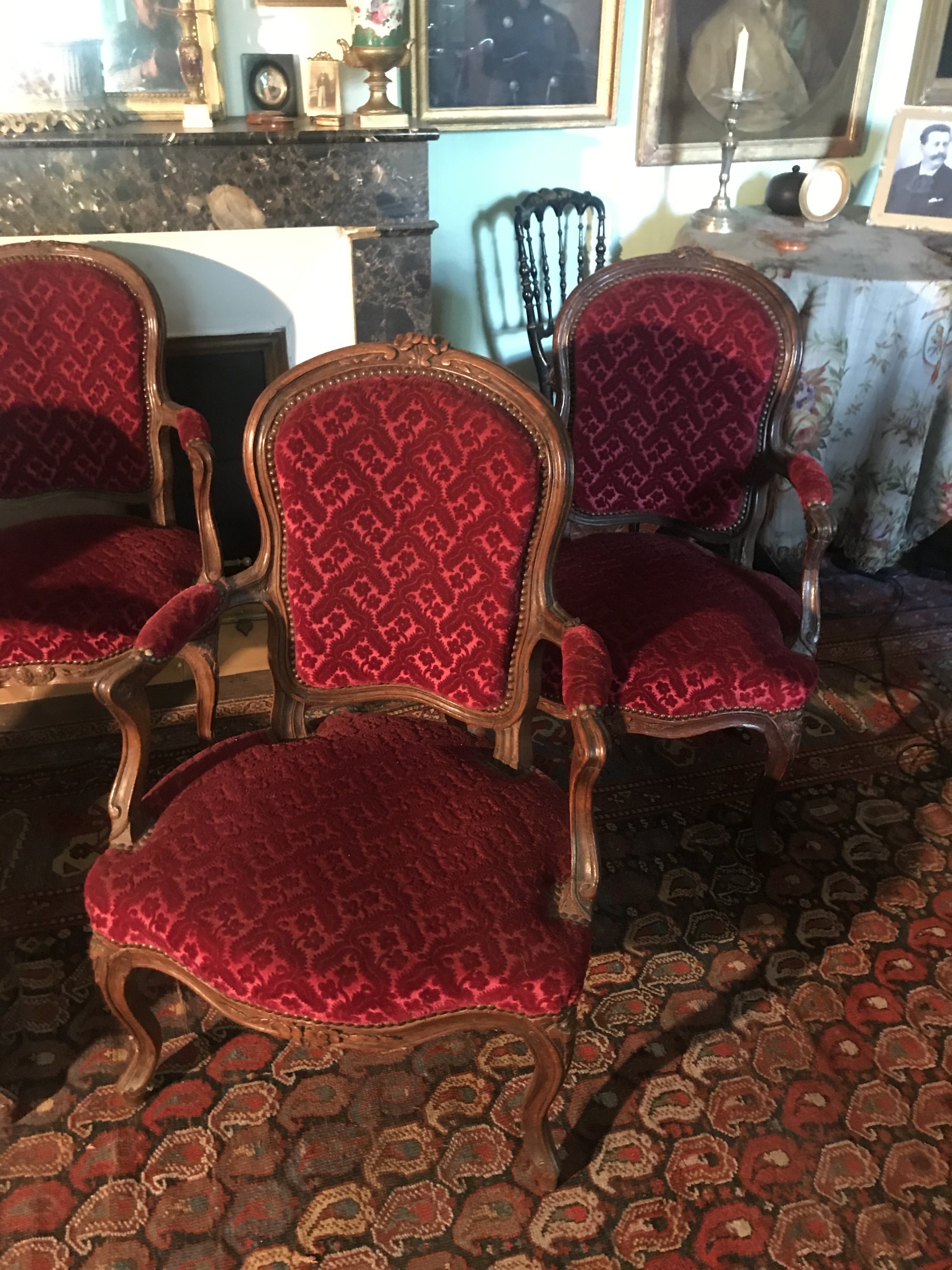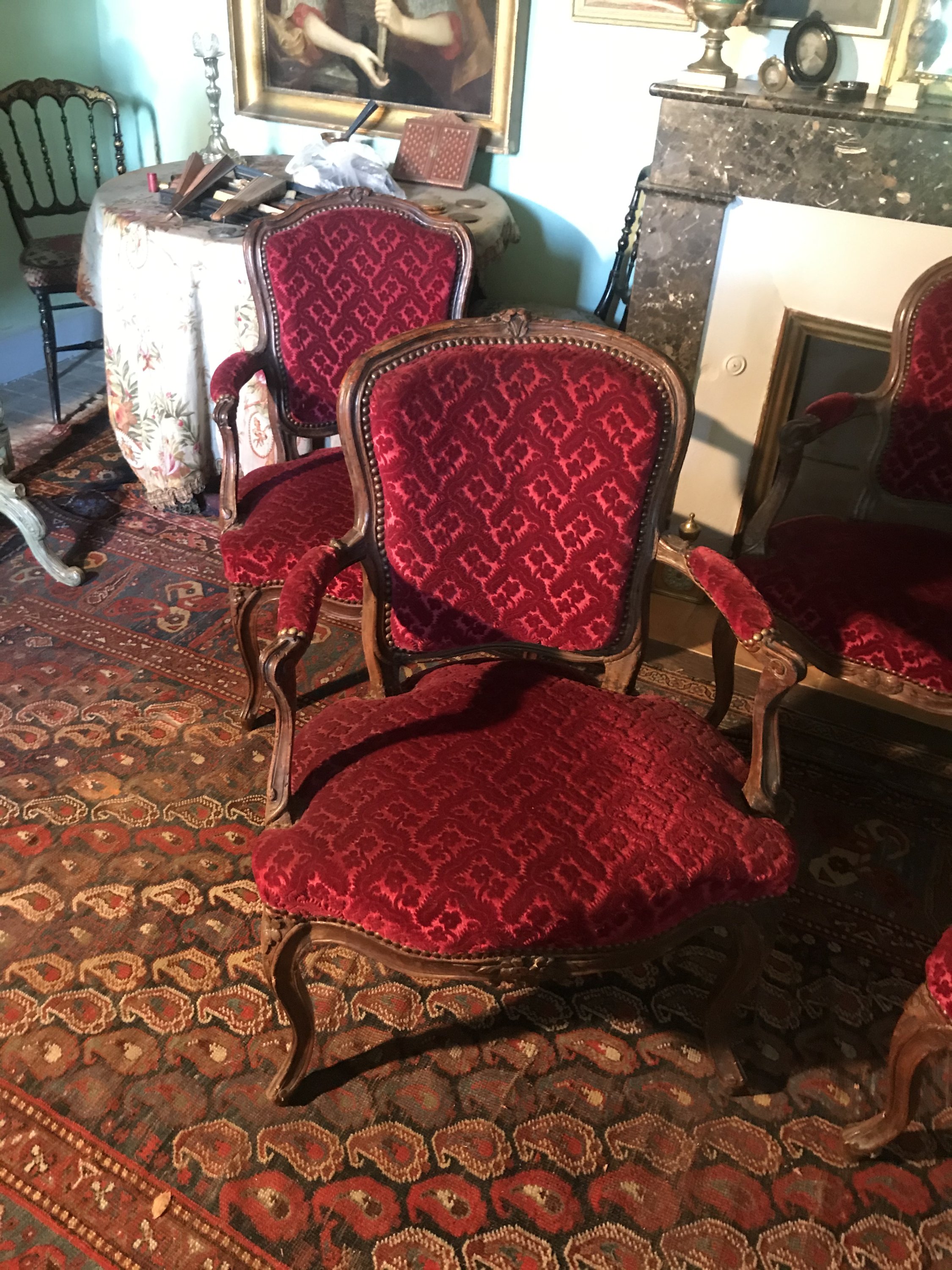 Recouverts dun velours rouge frappé moderne à décor de fleurettes.