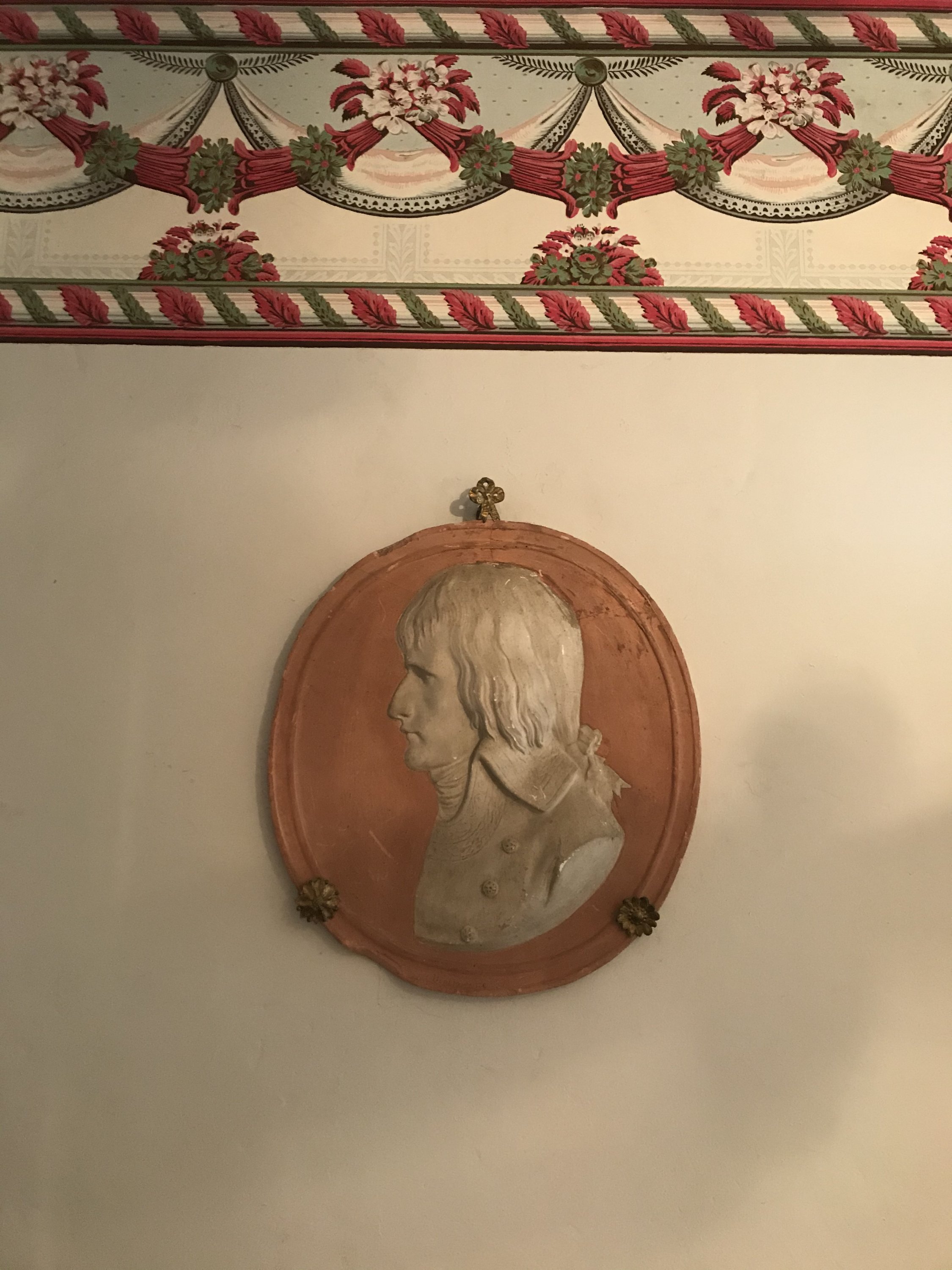 Médaillon en plâtre teint.