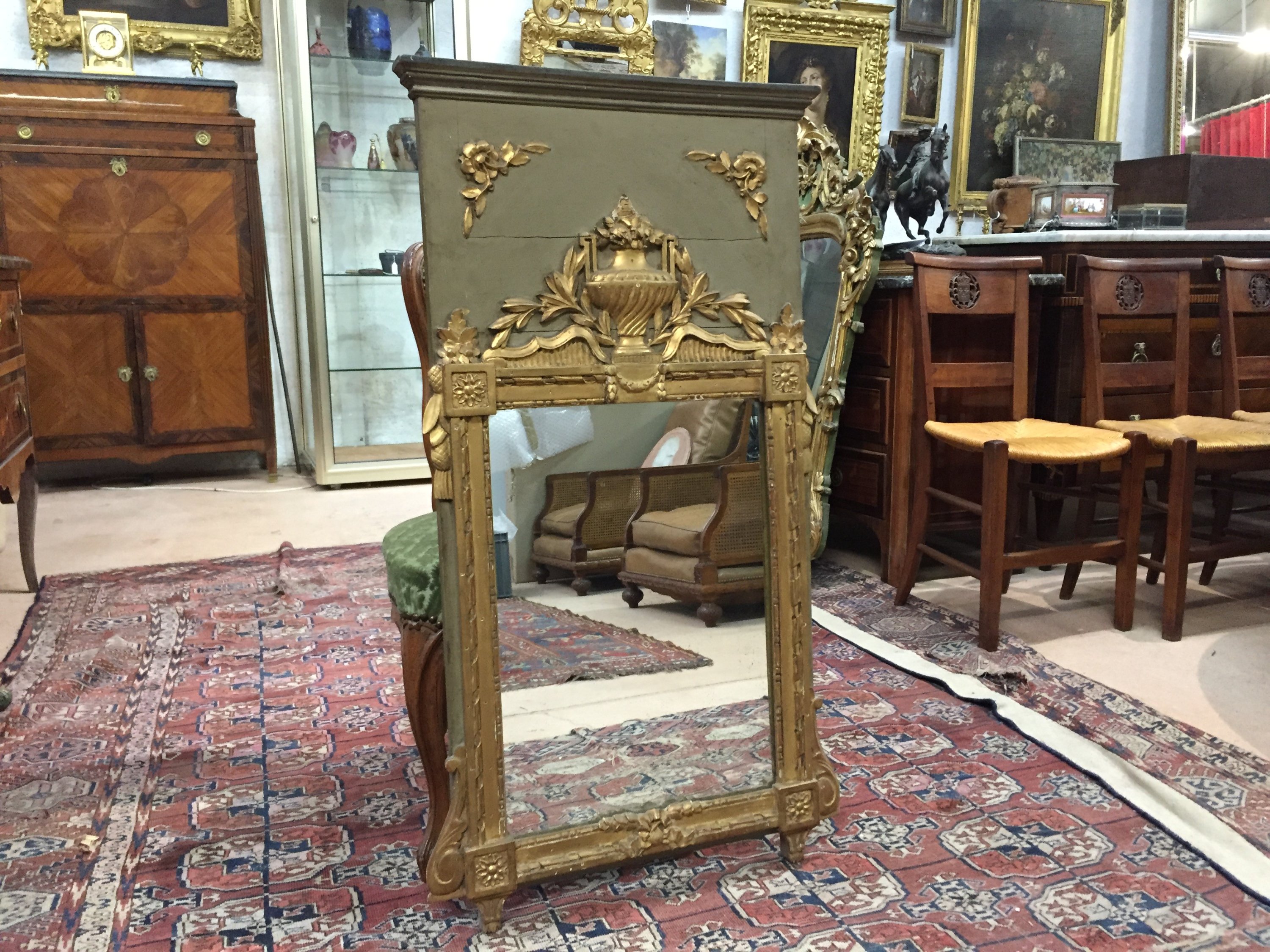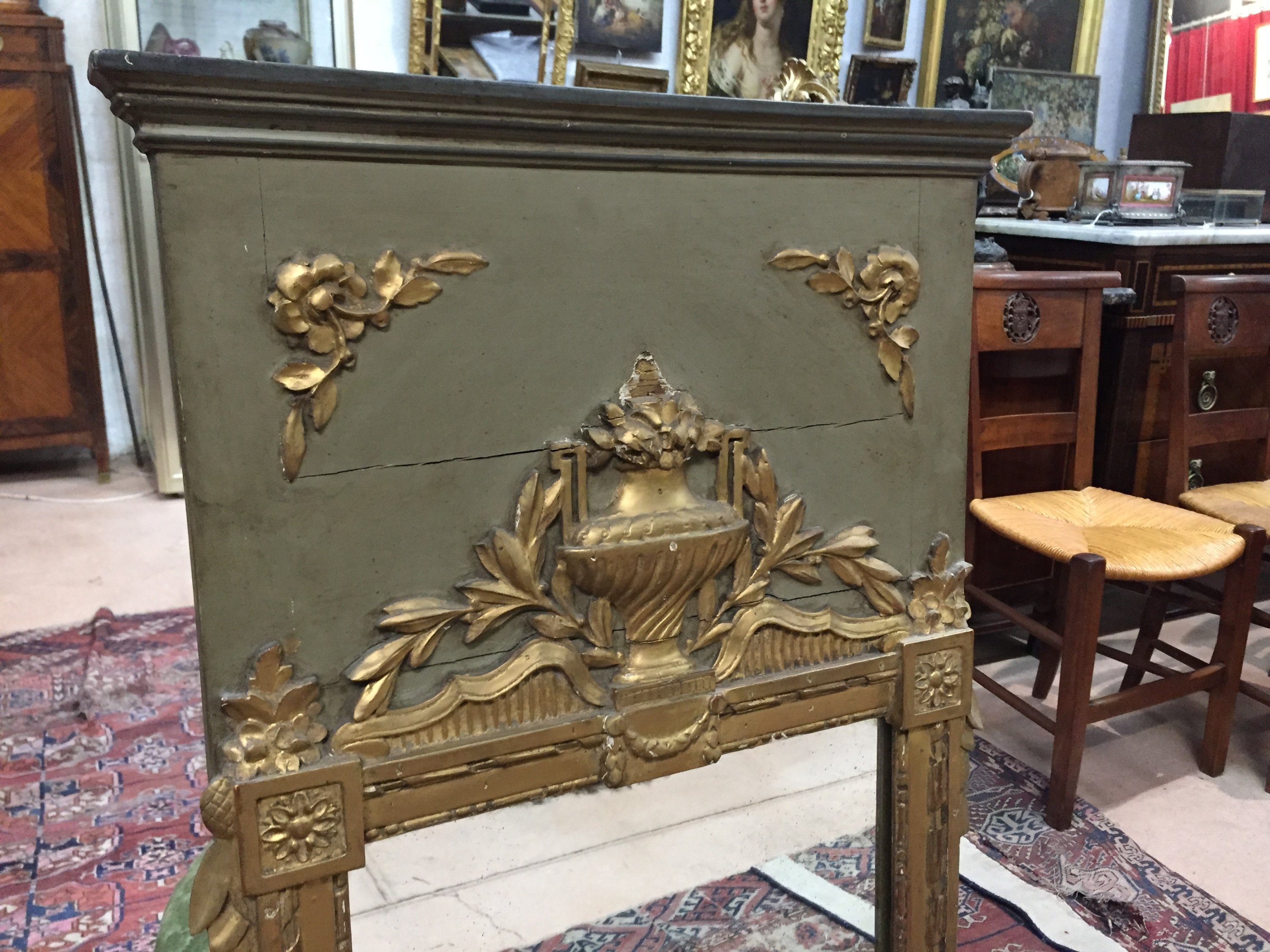 GLACE formant trumeau en bois stuqué à décor de vase,...