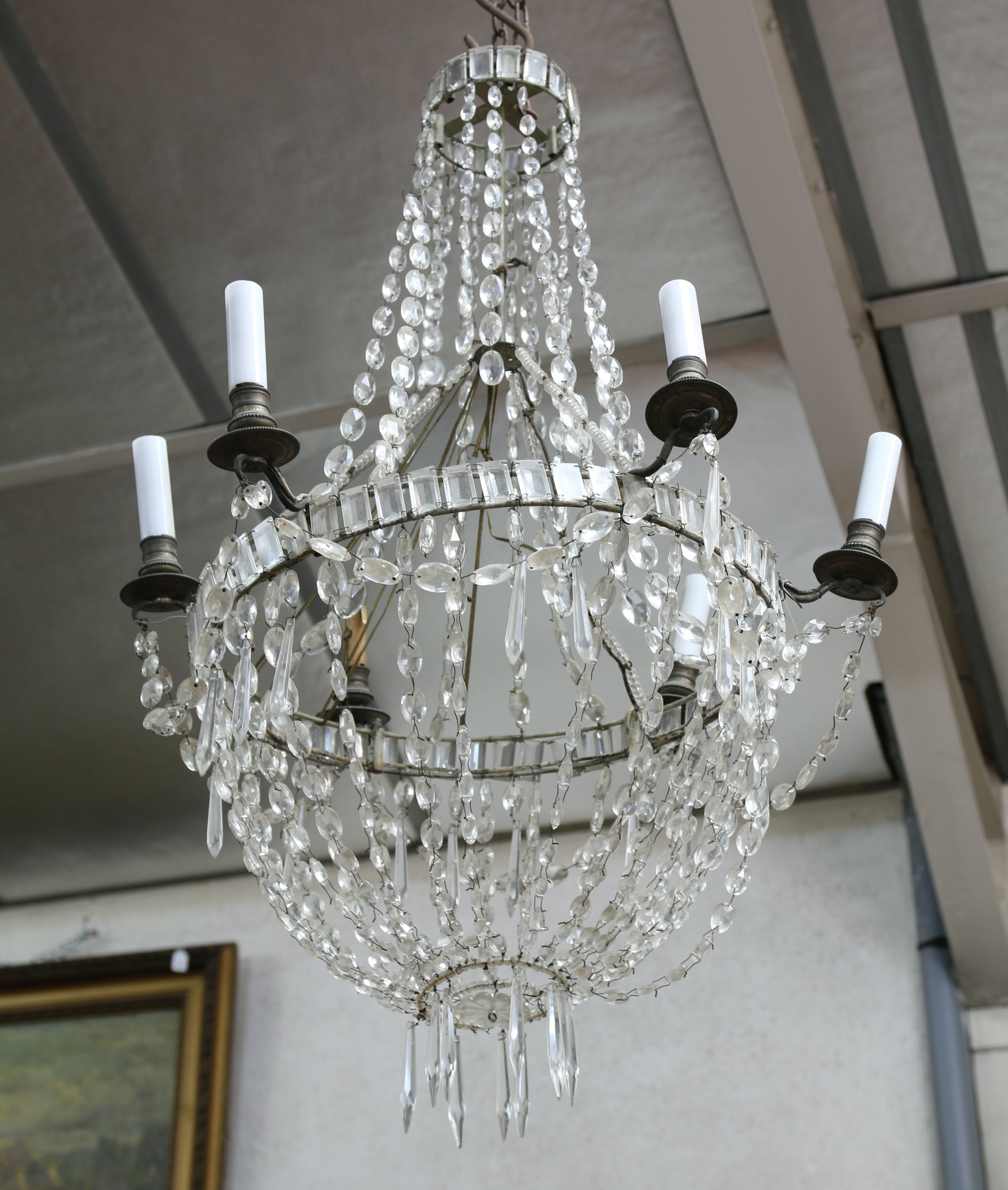 LUSTRE MONTGOLFIÈREà six bougies en verre-cristal. XIXe.Haut. 80, Diam. 50...