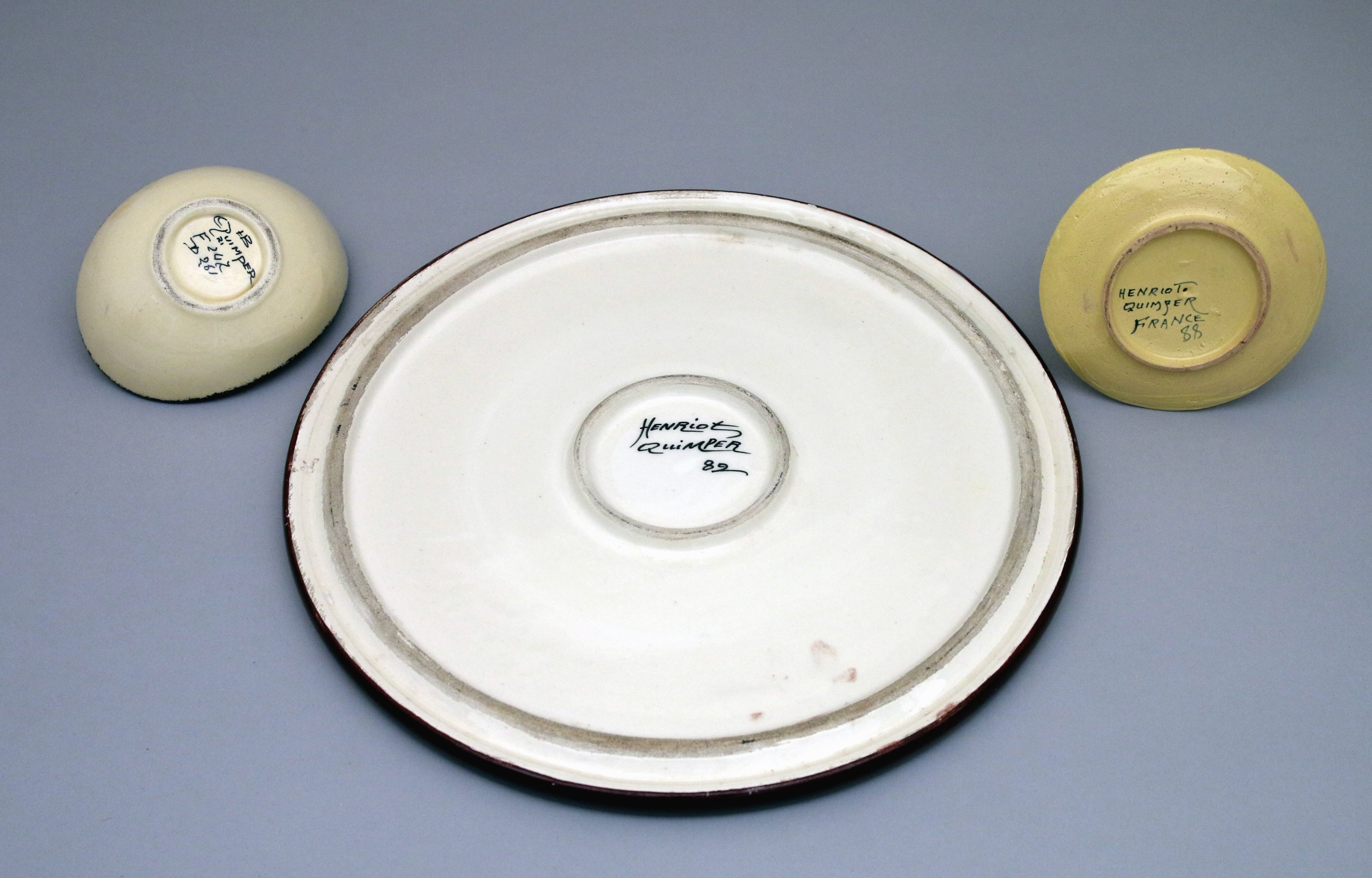 QUIMPER-HENRIOT. LOT de TROIS PIÈCES en faïence: